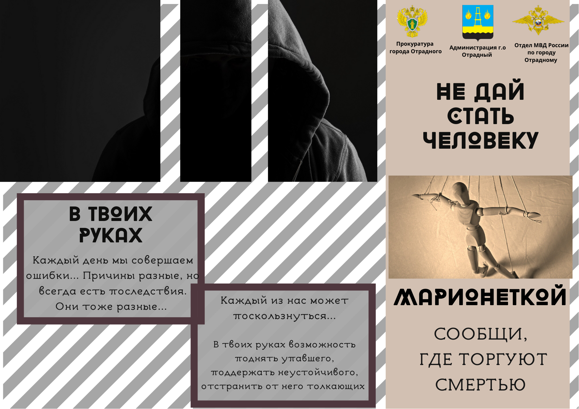 Прокуратурой города Отрадного совместно с администрацией городского округа и ОМВД России по г. Отрадному в целях проведения профилактических мероприятий и недопущения употребления несовершеннолетними наркотических средств разработаны флаеры и буклеты, кот