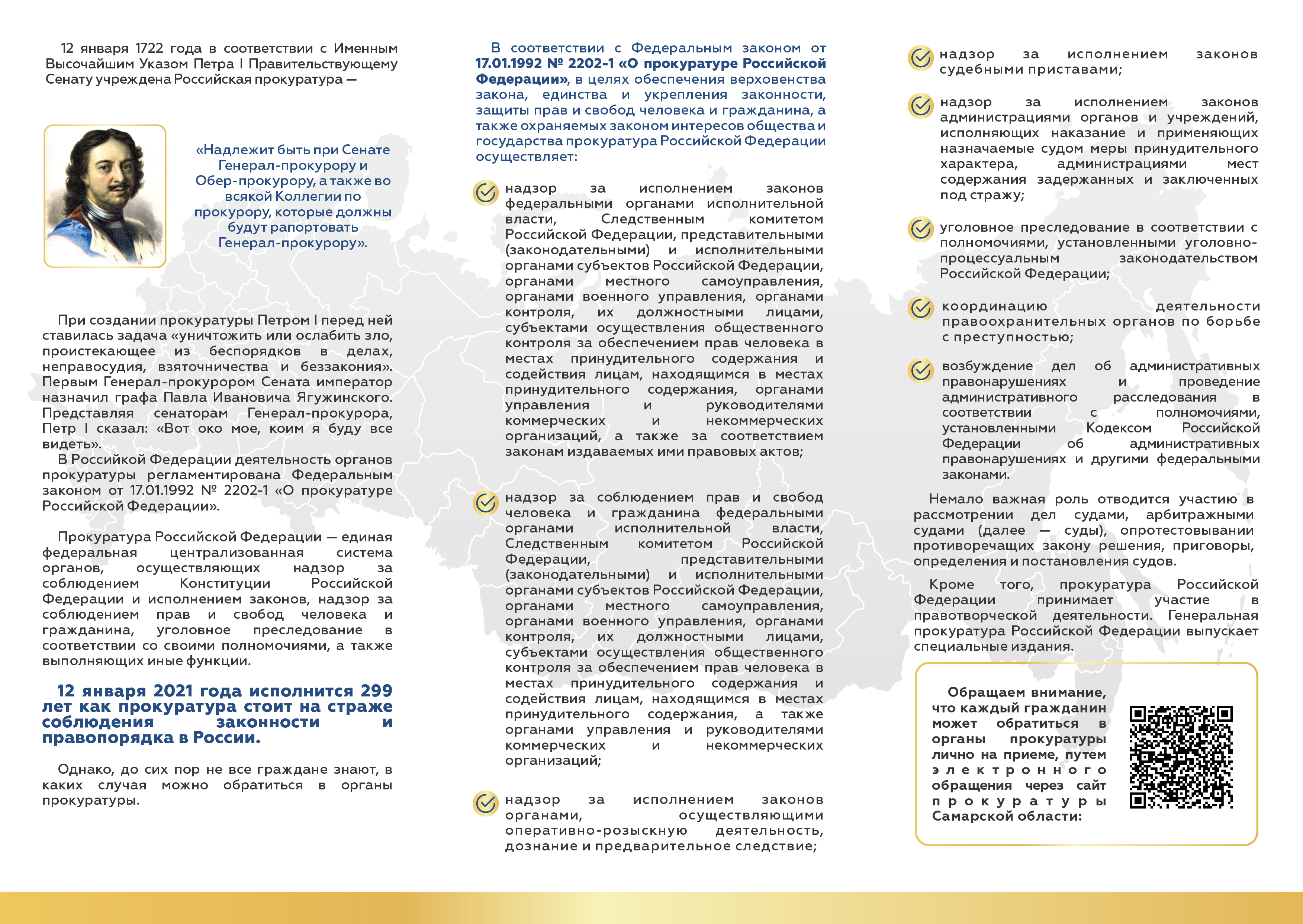 В преддверии 299-летия работники прокуратуры г. Жигулевска разработали буклет "Кто такой прокурор? Чем он занимается? Как к нему обратиться?"