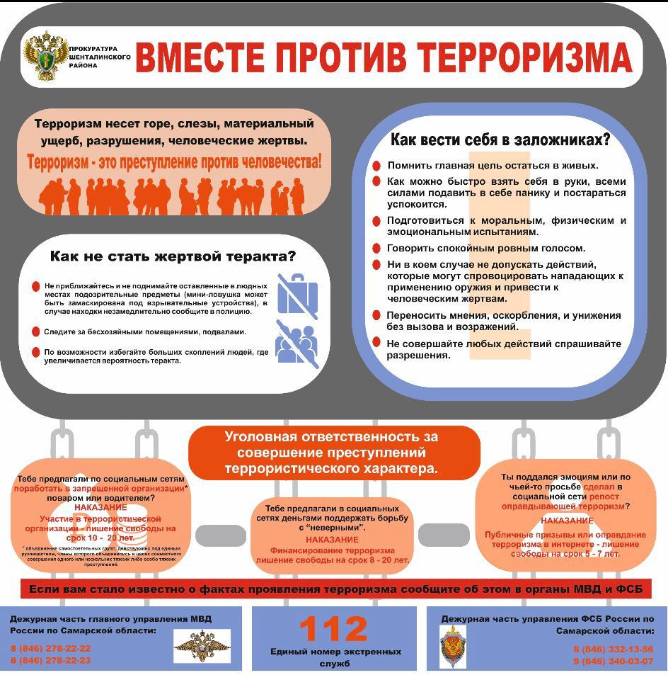 Памятка прокуратуры Шенталинского района «Вместе против терроризма»