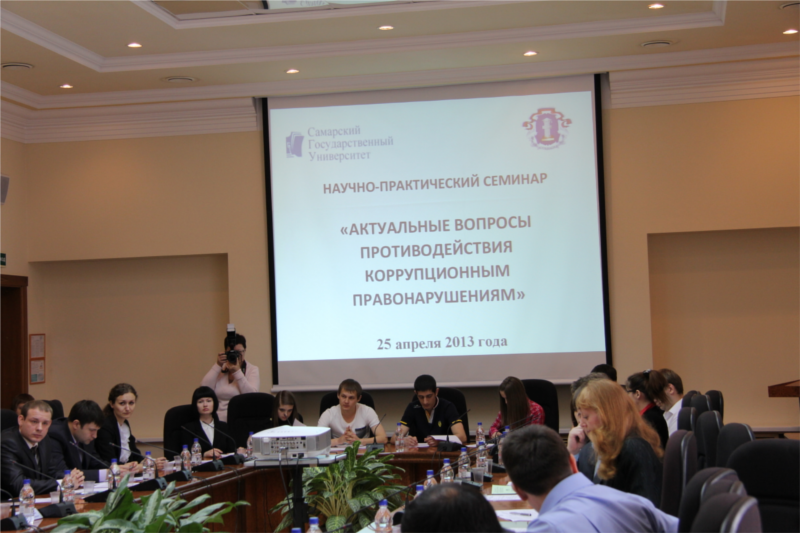 В рамках реализации стратегии антикоррупционной политики в Самарской области начальником отдела по надзору за исполнением законодательства о противодействии коррупции прокуратуры области Динарой Каюмовой 25 апреля 2013 в Самарском государственном университете в рамках научно-практического семинара «Актуальные вопросы противодействия коррупционным правонарушениям» организовано выступление на тему: «Вопросы межотраслевого согласования правовых норм о противодействии коррупции».