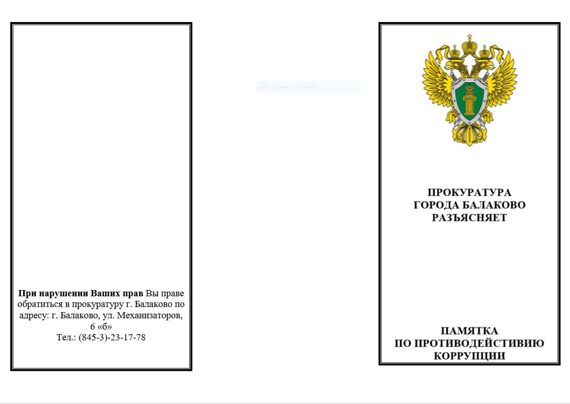Памятка прокуратуры г. Балаково раскрывает понятие "противодействие коррупции", содержит информацию о принципах противодействия коррупции