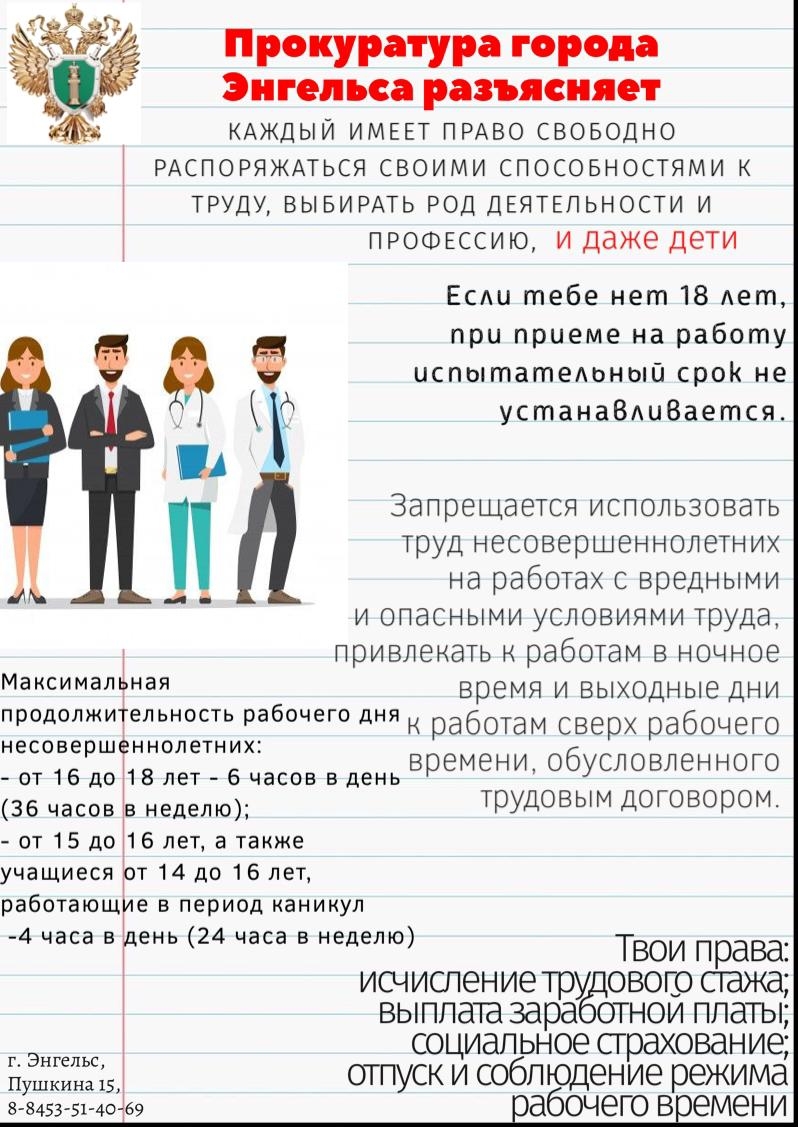 Памятка о трудовых гарантиях несовершеннолетних. Подготовлена прокуратурой г. Энгельса