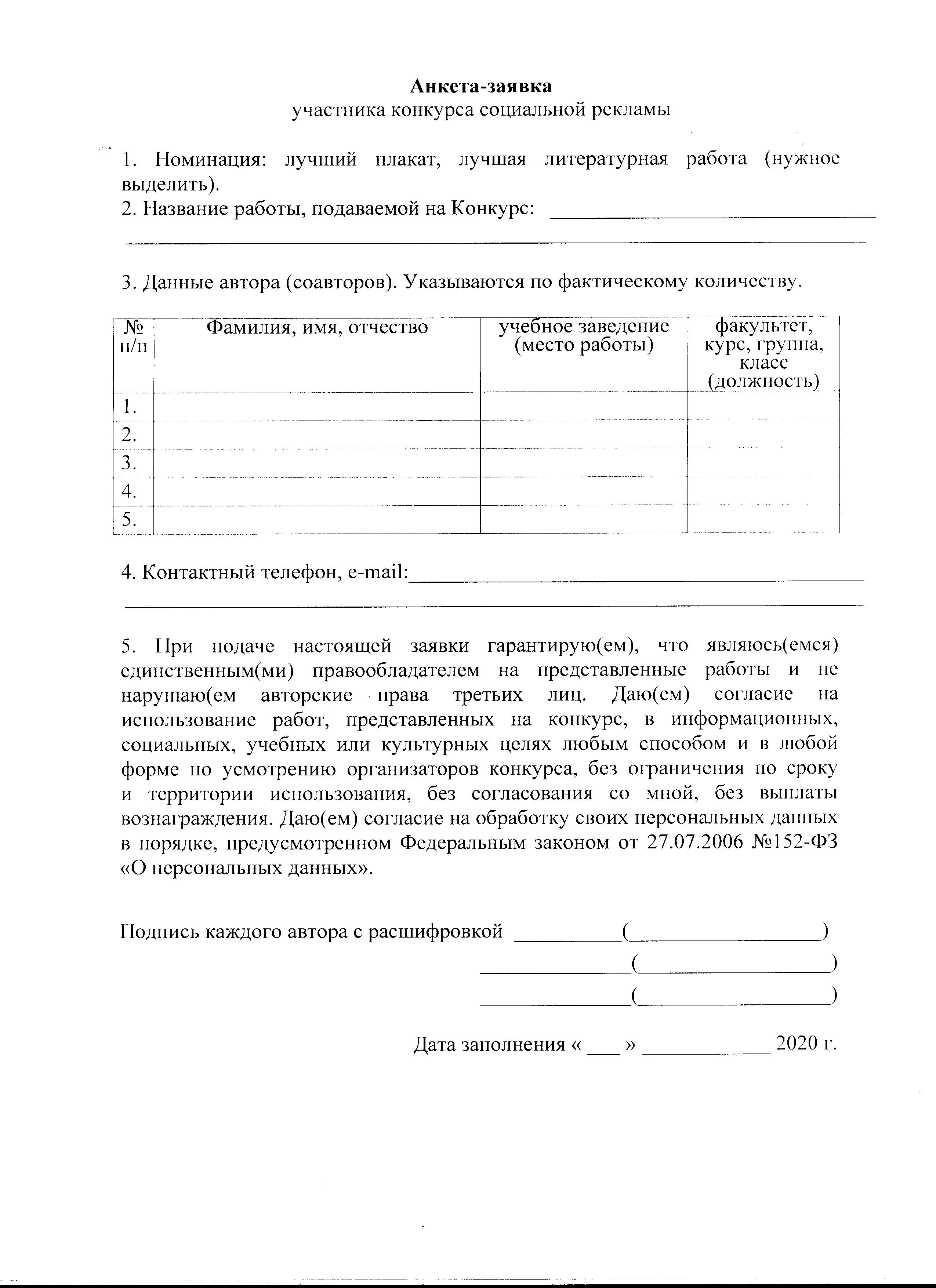 Анкета-заявка на конкурс социальной рекламы "Молодежь против коррупции"