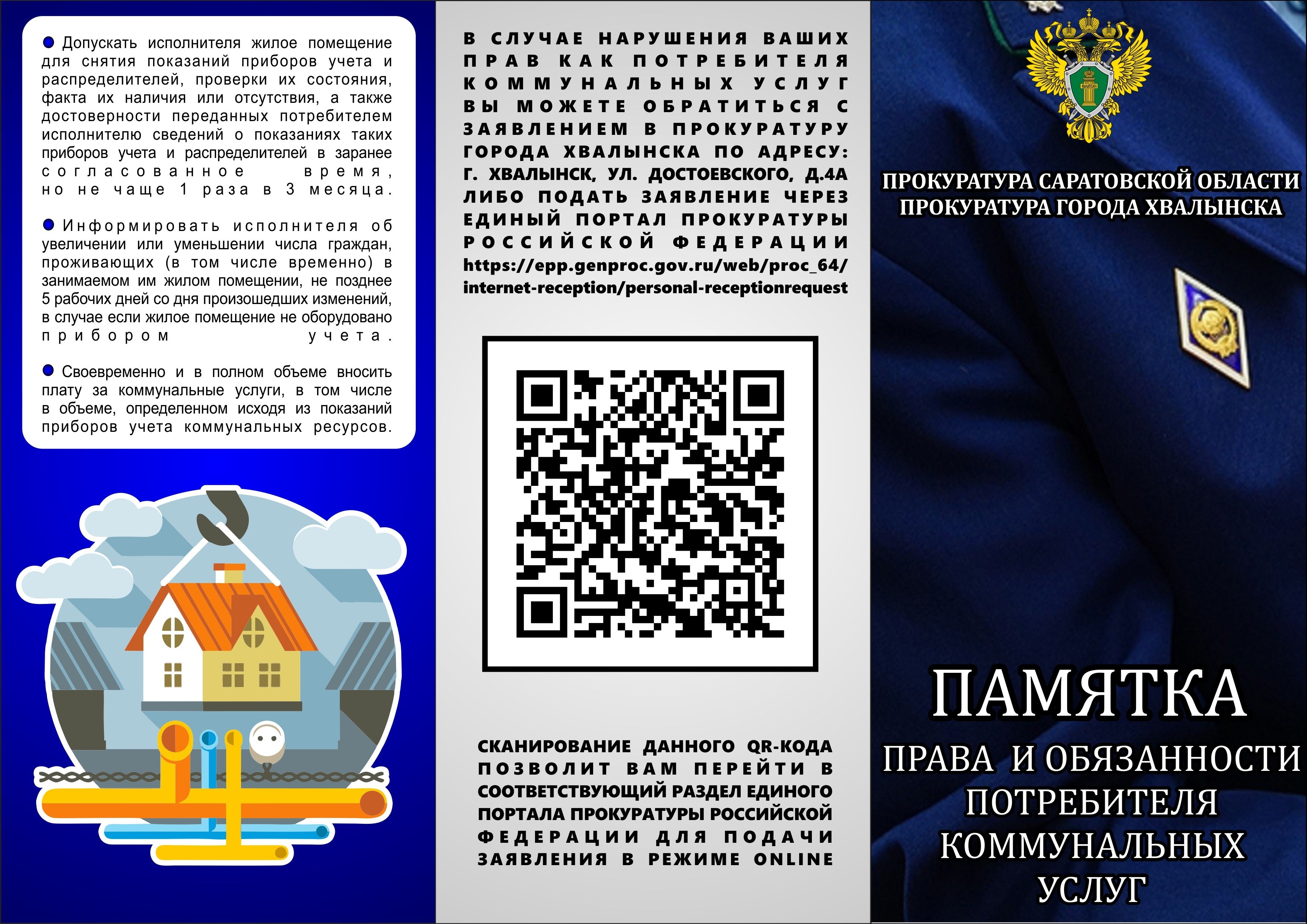 О том, какие права и обязанности имеются у потребителя коммунальных услуг, в памятке разъяснили работники Хвалынской городской прокуратуры.