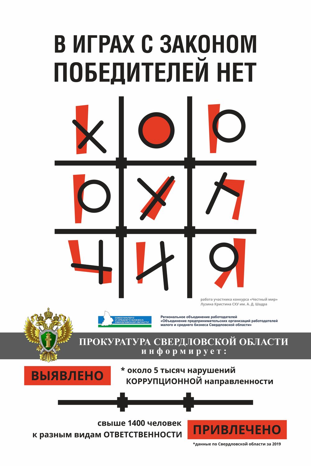 Сити формат "В играх с законом победителей нет" размещен на улицах и в скверах г.Екатеринбурга. Подготовлен совместно с Союзом малого и среднего бизнеса Свердловской области