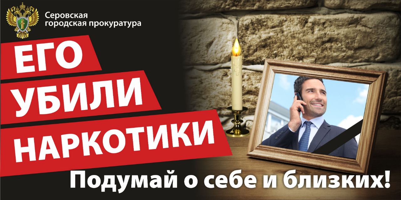 Баннер "Его убили наркотики. Подумай о себе и близких" подготовлен Серовской городской прокуратурой и размещен в г.Серове