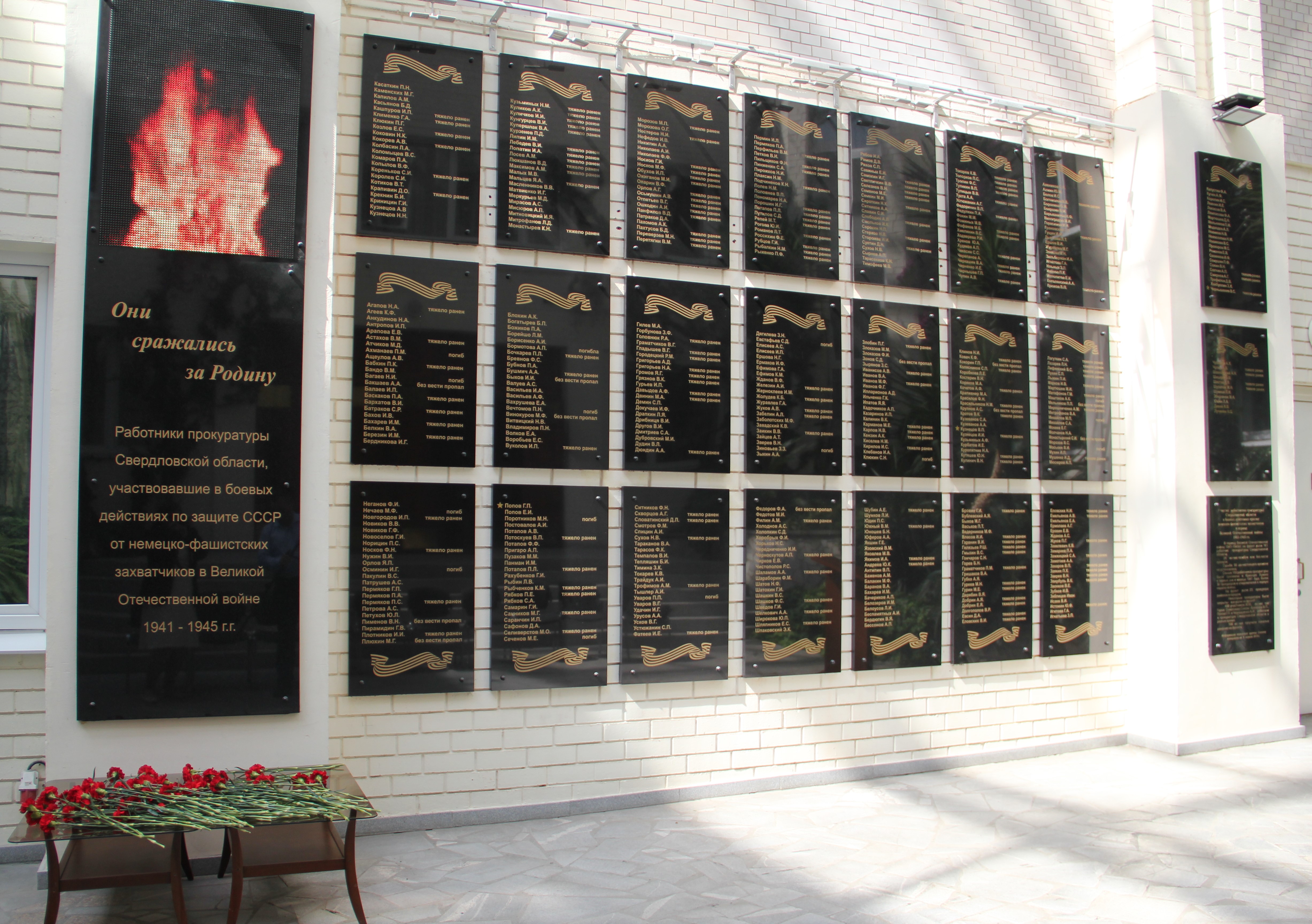 Прокуратура Свердловской области по праву гордится 3 Героями Советского Союза, в честь которых в здании областной прокуратуры установлены мемориальные доски: Виктором Павловичем Кузнецовым, Геннадием Петровичем Поповым и Виктором Семеновичем Чернышенко.