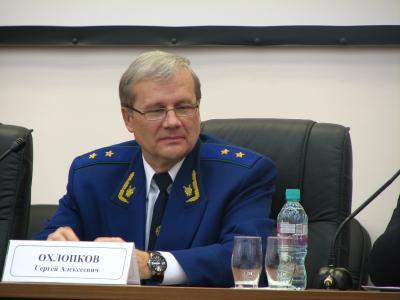 8 ноября 2011 года в соответствии с частью 3 статьи 129 Конституции Российской Федерации, после прохождения обязательной процедуры согласования на заседании Свердловской областной Думы, приказом Генерального прокурора России Ю.Я.Чайки прокурором Свердловской области назначен государственный советник юстиции 2 класса С.А.Охлопков, ранее занимавший должность прокурора Республики Адыгея.