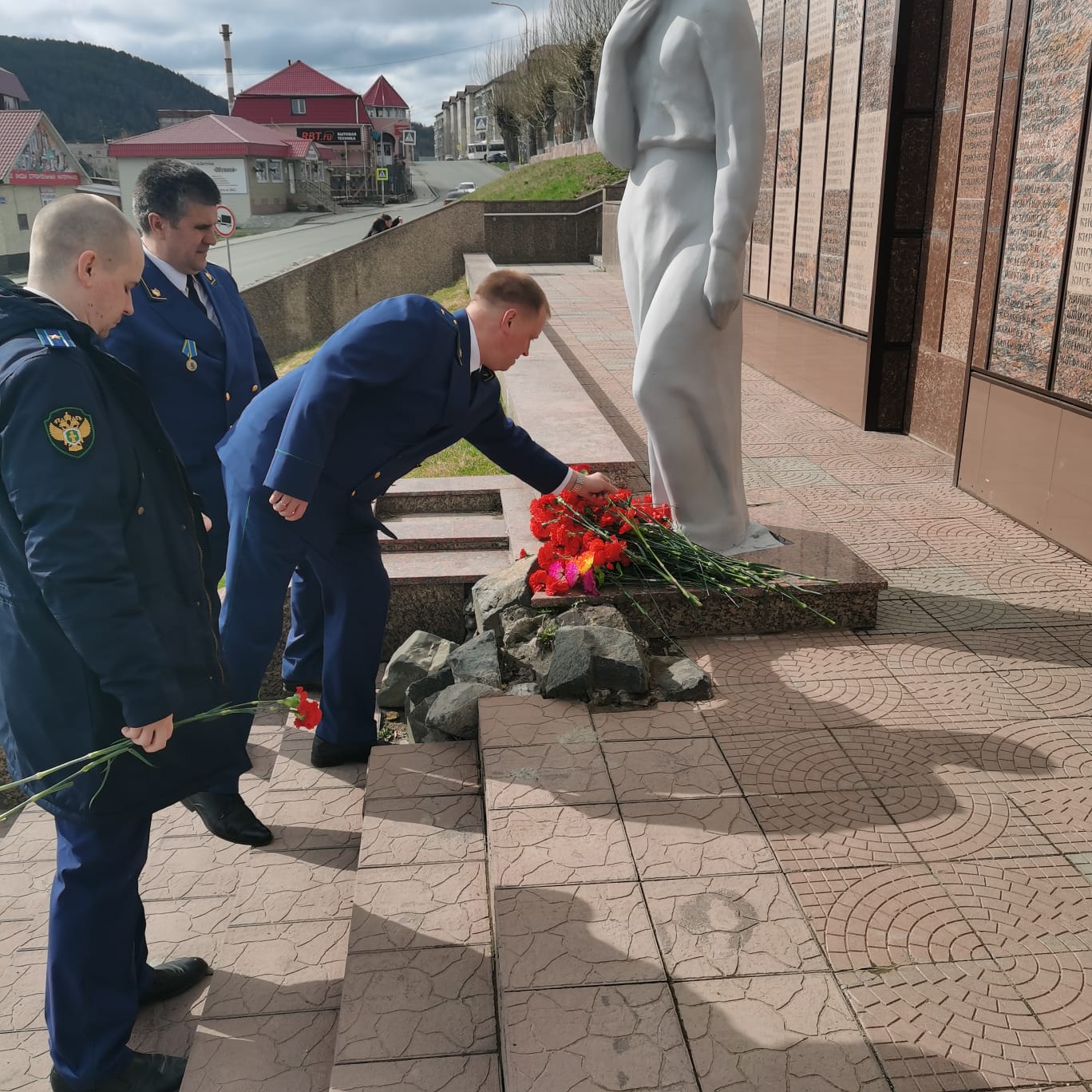 Сотрудники Ивдельской прокуратуры по надзору за соблюдением законов в исправительных учреждениях 9 мая 2023 года возложили цветы к Мемориалу памяти жертв в Великой Отечественной войне 1941-1945 годов г. Ивдель