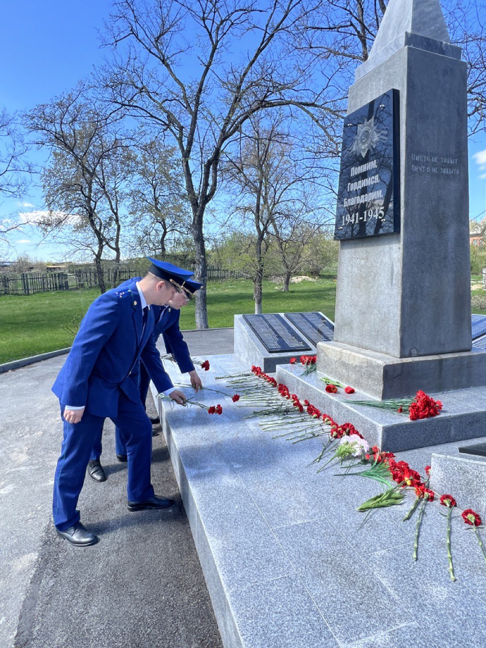 Кроме того, сотрудники Камышловской межрайонной прокуратуры возложили цветы к обелиску землякам, погибшим в годы Великой Отечественной войны, в парке Победы с. Обуховское Камышловского района и почтили память Героев Минутой молчания.