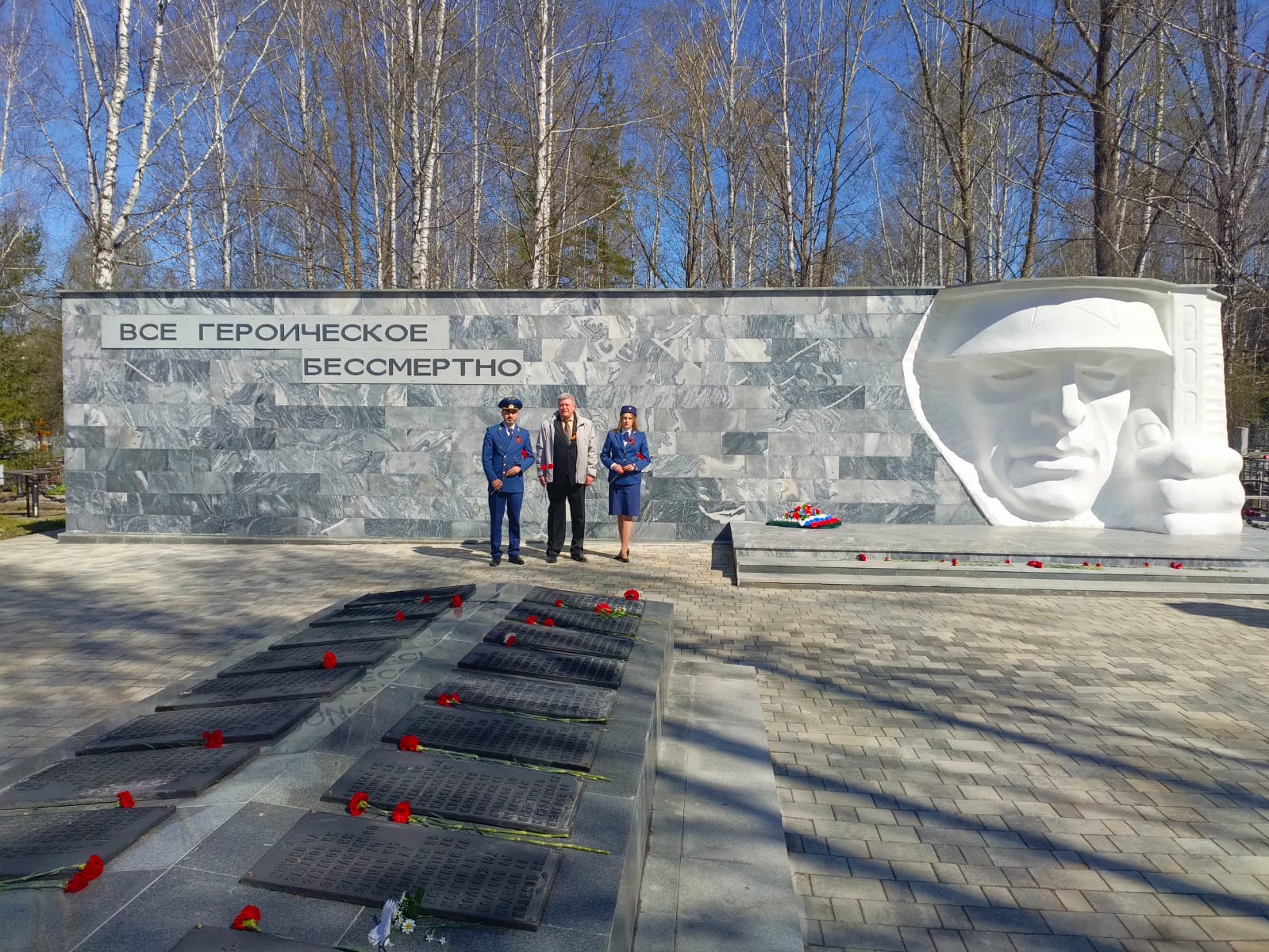 Сотрудники прокуратуры г. Ревда совместно с пенсионером надзорного ведомства в преддверии празднования Дня Победы возложили цветы к мемориальному комплексу воинской славы