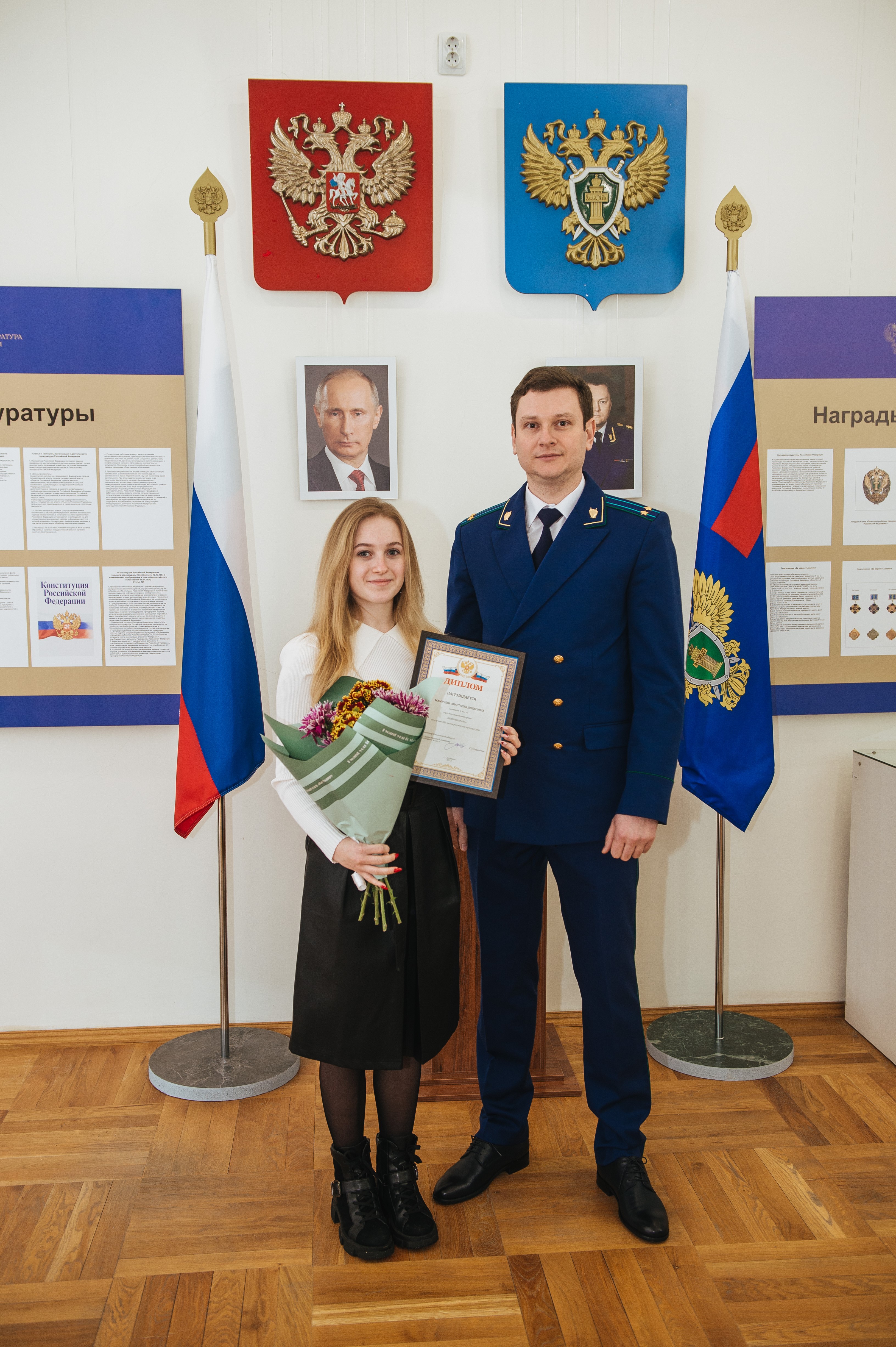 В торжественной обстановке заместитель прокурора области Дмитрий Тольский поздравил девушек с победой, пожелал успехов в учебной деятельности и дальнейших побед а также вручил им дипломы прокурора области.