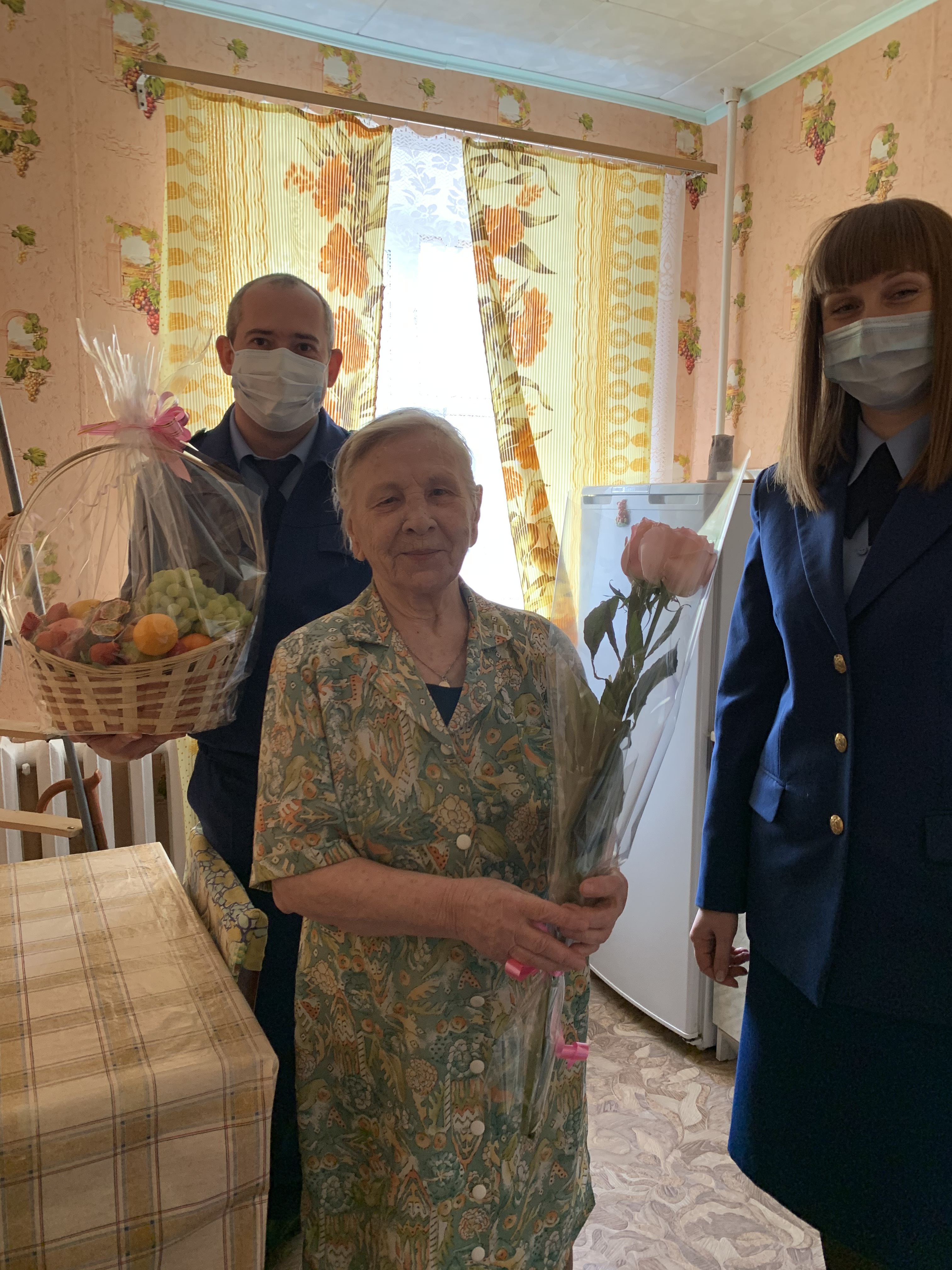 В минувшею среду, 27 апреля 2021 года, помощники Вяземского межрайонного прокурора Козлов П.Д. и Куштарева А.А. поздравили ветерана Великой Отечественной Войны - Щербакову Веру Никаноровну, которой в этом году исполнилось 95 лет, с наступающим праздником Великой Победы и пожелали ей крепкого здоровья, благополучия, добра и мирного неба над головой.