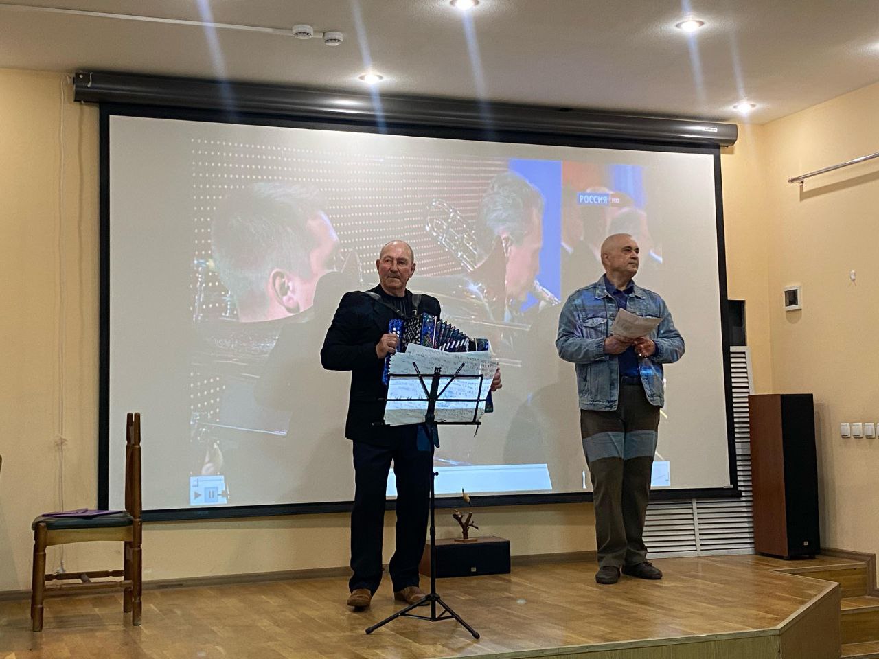 На литературно-музыкальном вечере собрались любители поэзии, которые с удовольствием встретились с постоянными участниками поэтических вечеров из Сосновки: ветераном прокуратуры - поэтом и прозаиком Николаем Николаевичем Чербаевым и его соратниками: Юрием Николаевичем Трушкиным и Геннадием Михайловичем Коноваловым, которые написали музыку на стихи Николая Николаевича и исполнили песни под гитару и гармонь.
