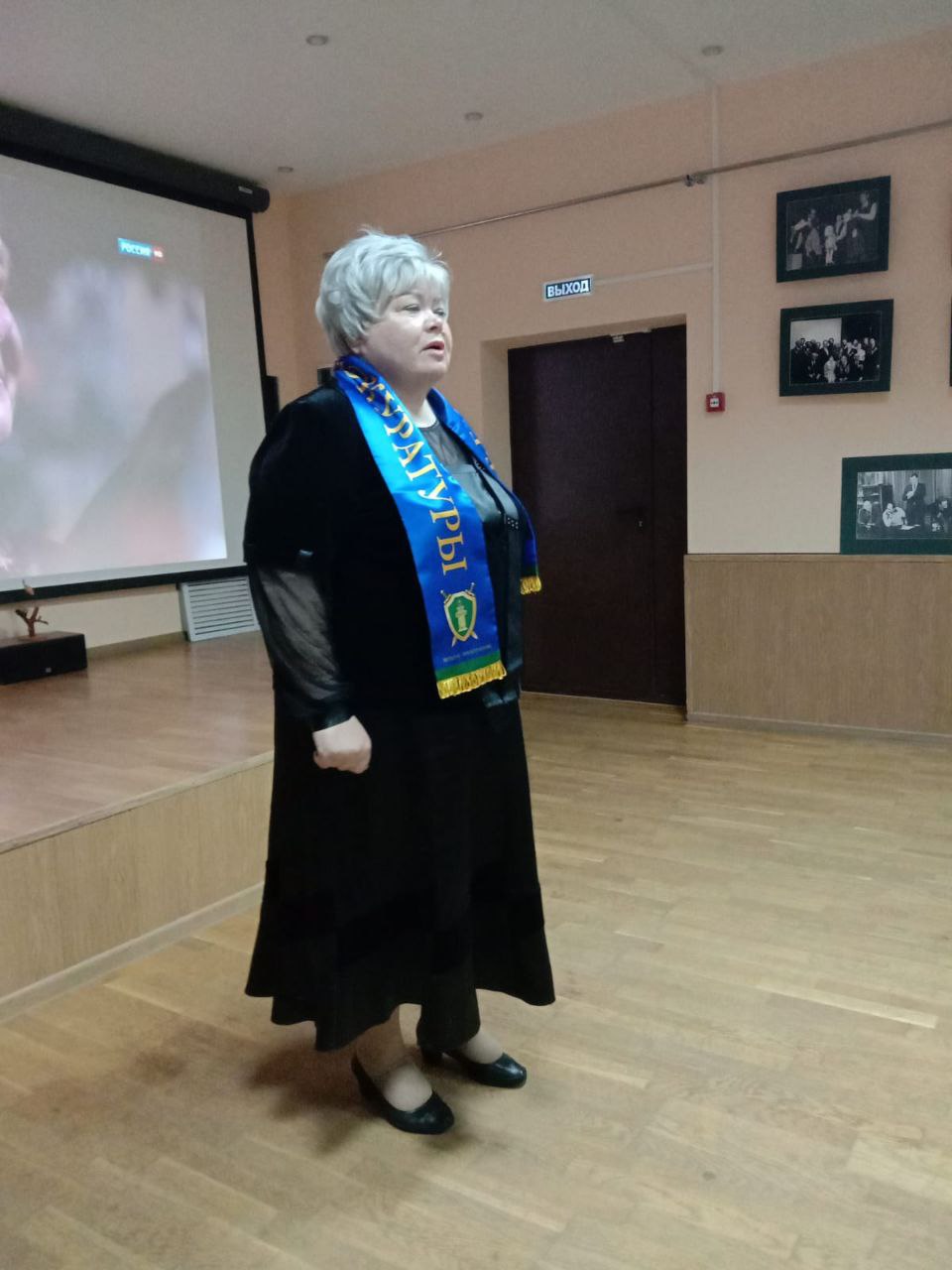 Талантливо выступили с прочтением стихов ветеран прокуратуры Лишищина Таисия Анатольевна. В её исполнении прозвучало стихотворение о войне Евгения Евтушенко «Настя Карпова». Попова Юлия Николаевна выступила со стихотворением Анны Ахматовой «Мужество».