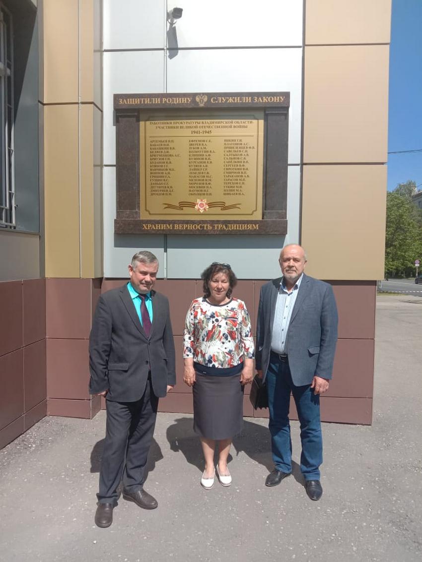 Очень полезно было посетить музей прокуратуры Владимирской области. Встреча состоялась с председателем Совета ветеранов Александром Васильевичем Денисовым и начальником отдела кадров прокуратуры области Василием Васильевичем Шароновым, являющимся хранителем музея прокуратуры Владимирской области.