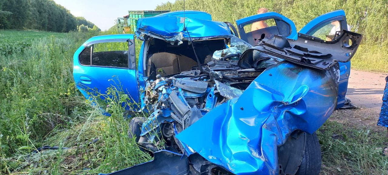 По предварительным данным, водитель (2005 г.р.) автомобиля «Рено Логан» не справился с управлением и допустил столкновение с движущимся в попутном направлении трактором с прицепом.