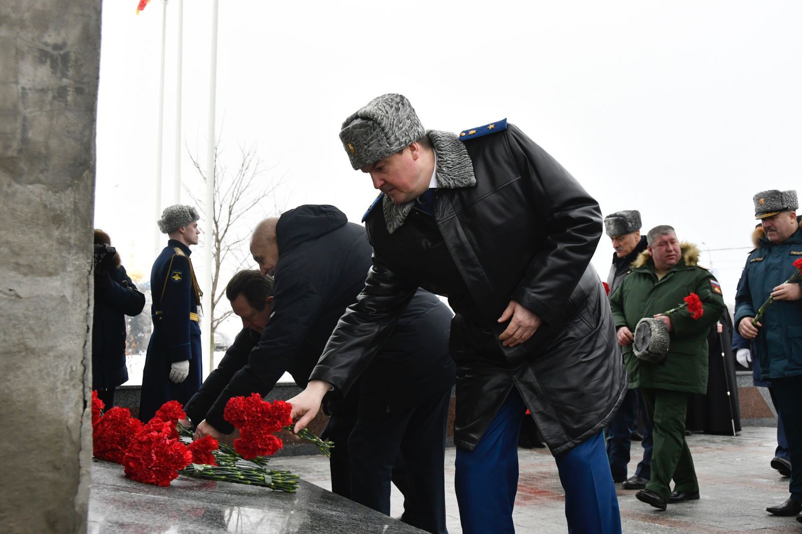 В День защитника Отечества прокурор области Максим Жук принял участие в церемонии возложения цветов к Обелиску Победы и стеле «Город воинской славы»