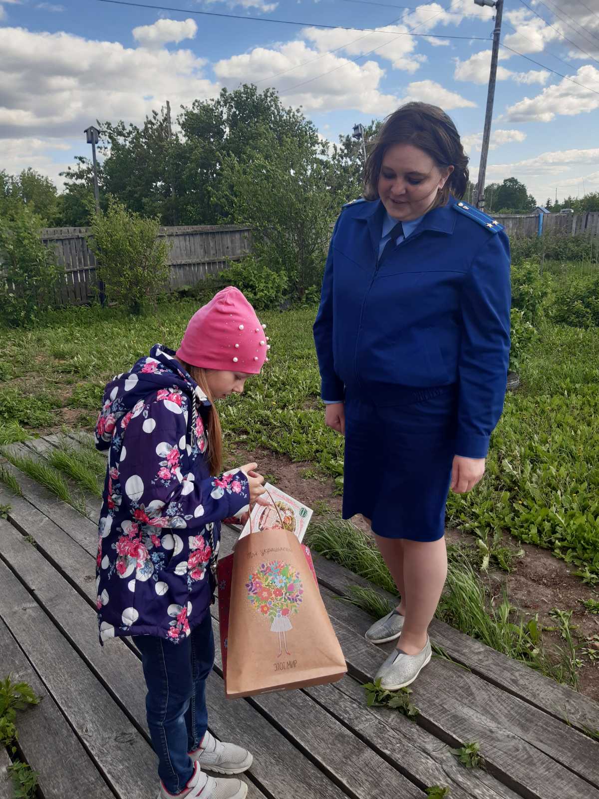И.о. прокурора Вагайского района Зайцева Евгения поздравила учащуюся Черноковской СОШ с праздником, вручила памятный подарок, пожелала крепкого здоровья, добра и веселых летних каникул. В интересах этой девочки прокуратурой района накануне направлено исковое заявление в суд о взыскании компенсации морального вреда с односельчанина, собака которого укусила девочку.