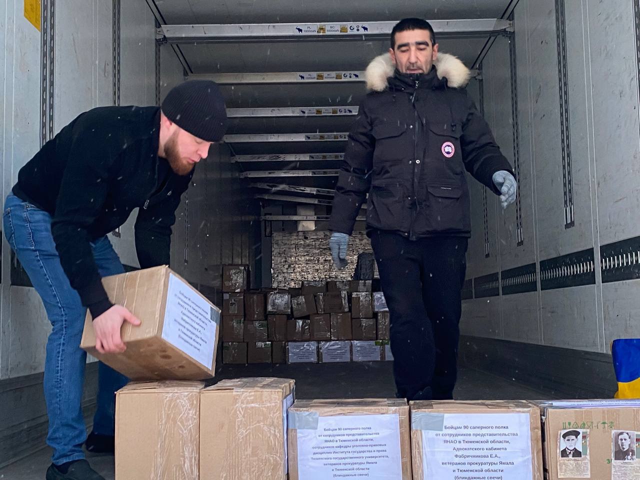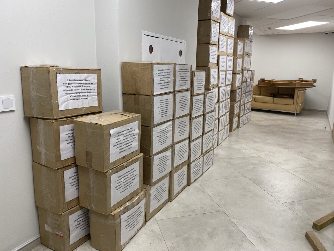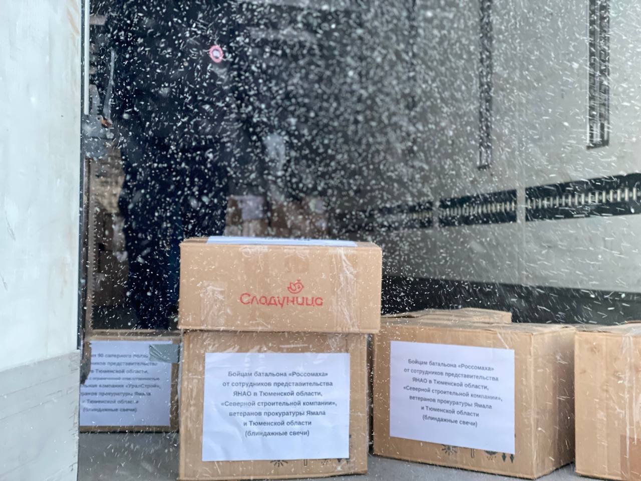 На этот раз в батальоны, сформированные из мобилизованных Тюменской области и Ямало-Ненецкого автономного округа, направлено 5743 блиндажных свечи, 6 комплектов индивидуальной маскировочной защиты и большая маскировочная сеть класса «кикимора» расцветки «грязный снег», сделанные участниками проекта.