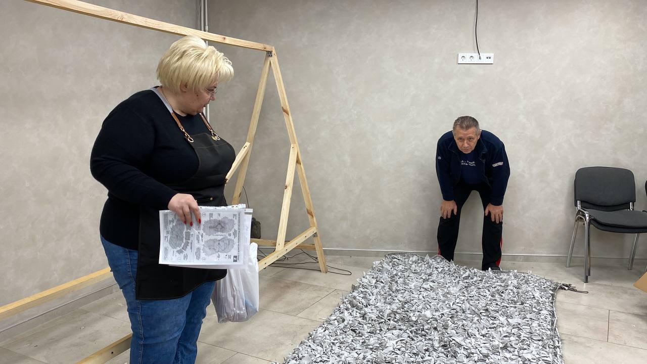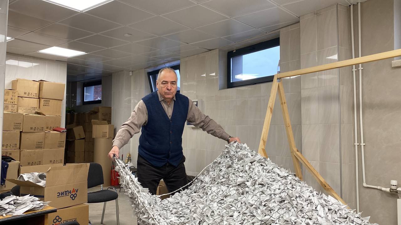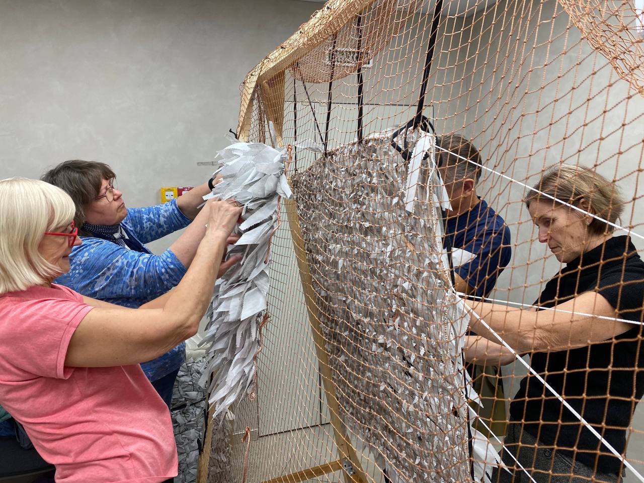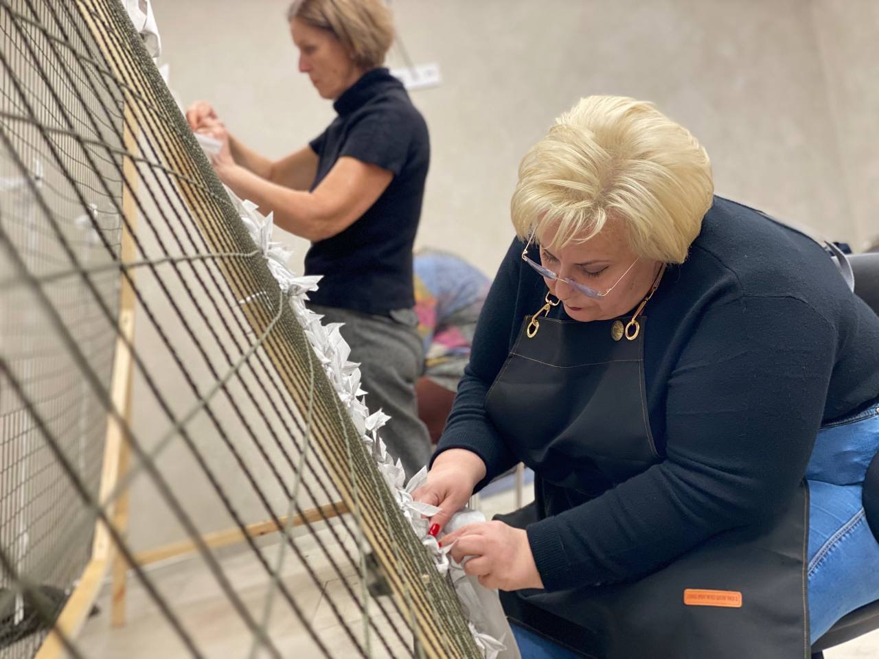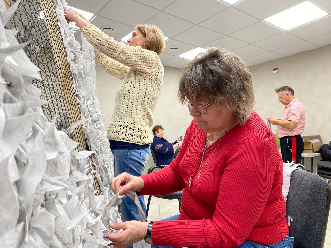 Накануне участники акции «Своих не бросаем» завершили работу по изготовлению очередной зимней маскировочной сети для отправки мобилизованным землякам в зону проведения СВО.