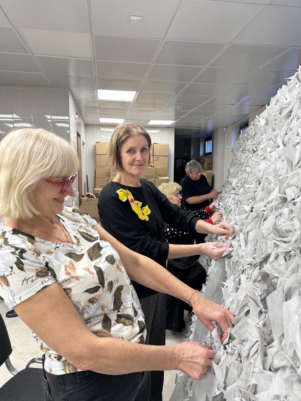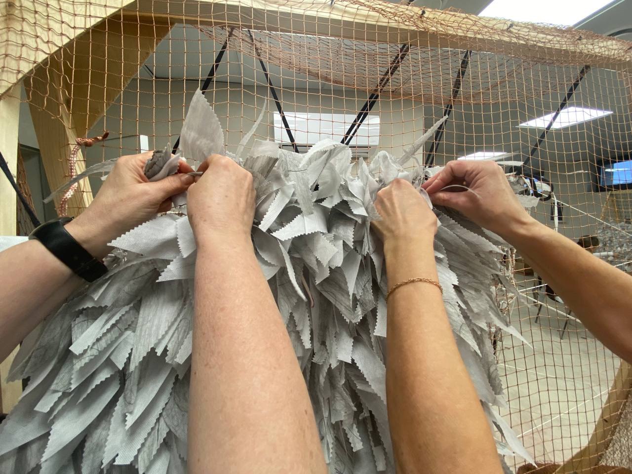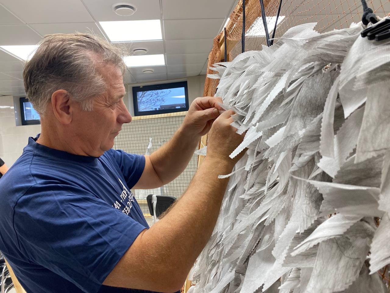 С каждым днем растет мастерство участников, благодаря чему очередная маскировочная сеть площадью восемнадцать квадратных метров была изготовлена за восемь встреч.