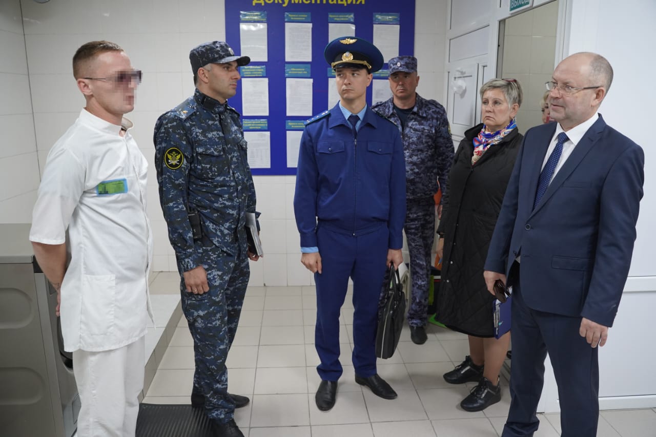И.о. Тюменского прокурора по надзору за соблюдением законов в исправительных учреждениях Тюменской области Евгений Поликарпов совместно с Уполномоченным по правам человека по Тюменской области Олегом Датских и начальником УФСИН России по Тюменской области Дмитрием Руппом проверил состояние законности в исправительной колонии № 4 и Областной больнице УФСИН России по Тюменской области, расположенных в г. Тюмень.
