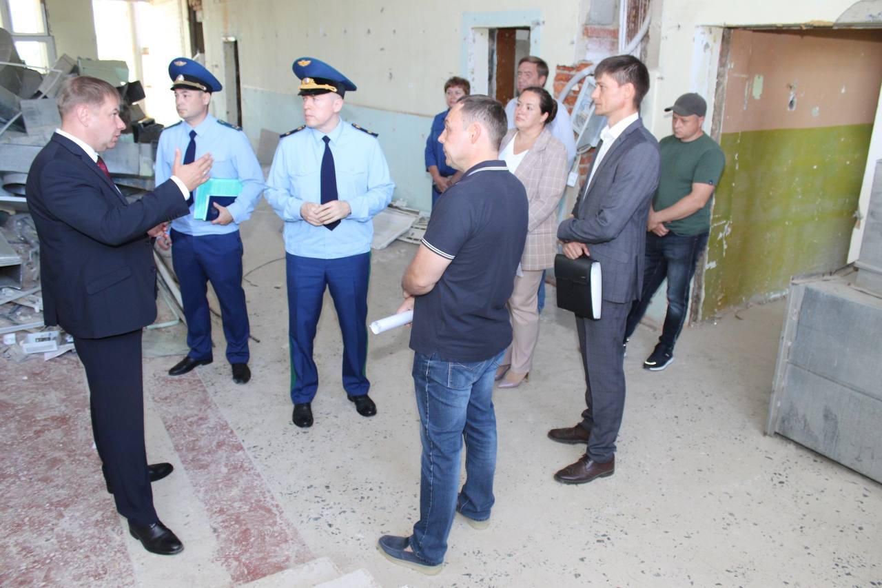 В рамках рабочей поездки прокурор региона проконтролировал выполнение работ по капитальному ремонту здания Дома культуры в п. Туртас, проводимому в рамках реализации мероприятий национального проекта «Семья» госпрограммы «Развитие культуры».