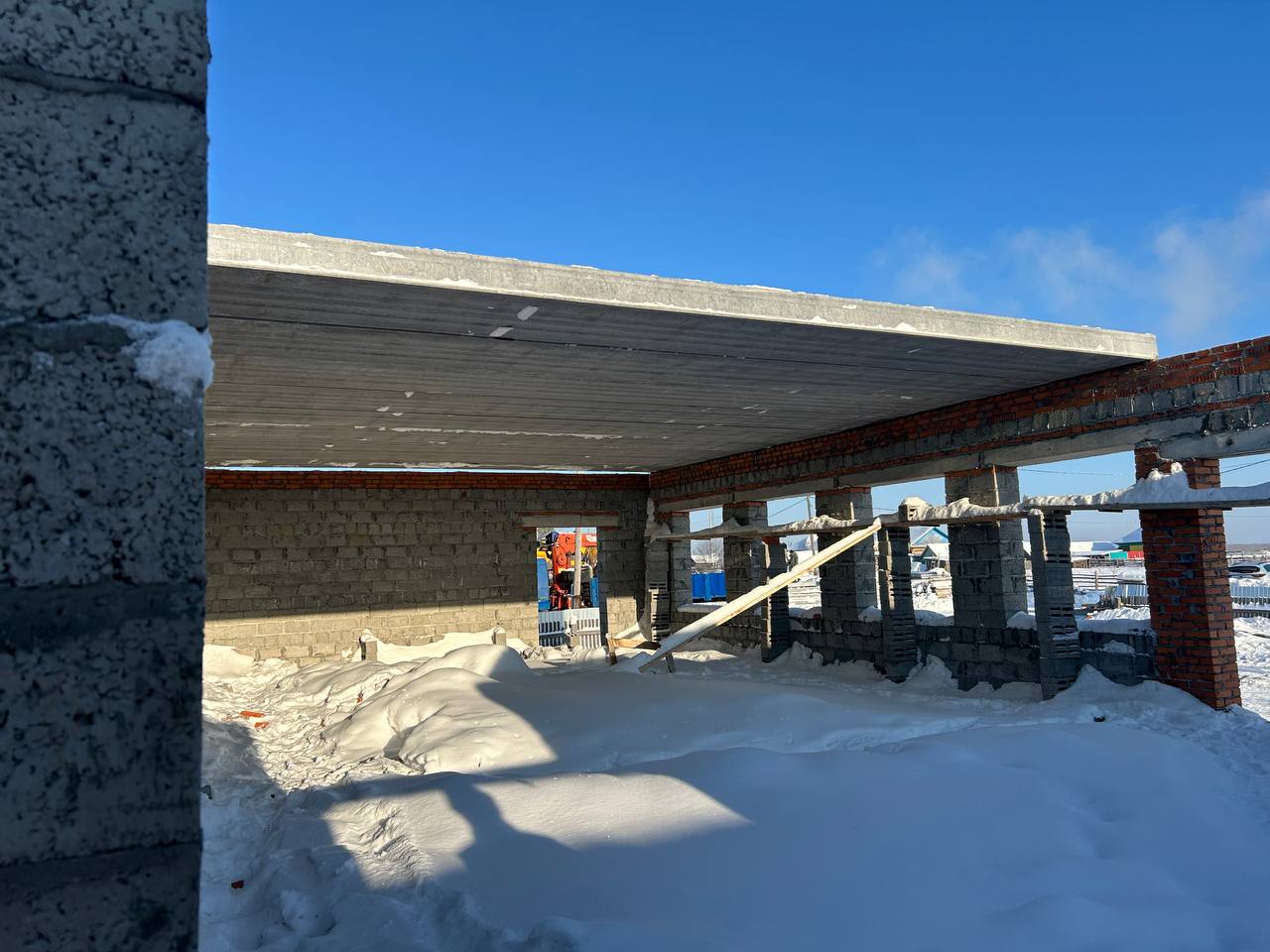 Кроме этого, в рамках выезда проинспектирован ход строительства общеобразовательной сельской школы.