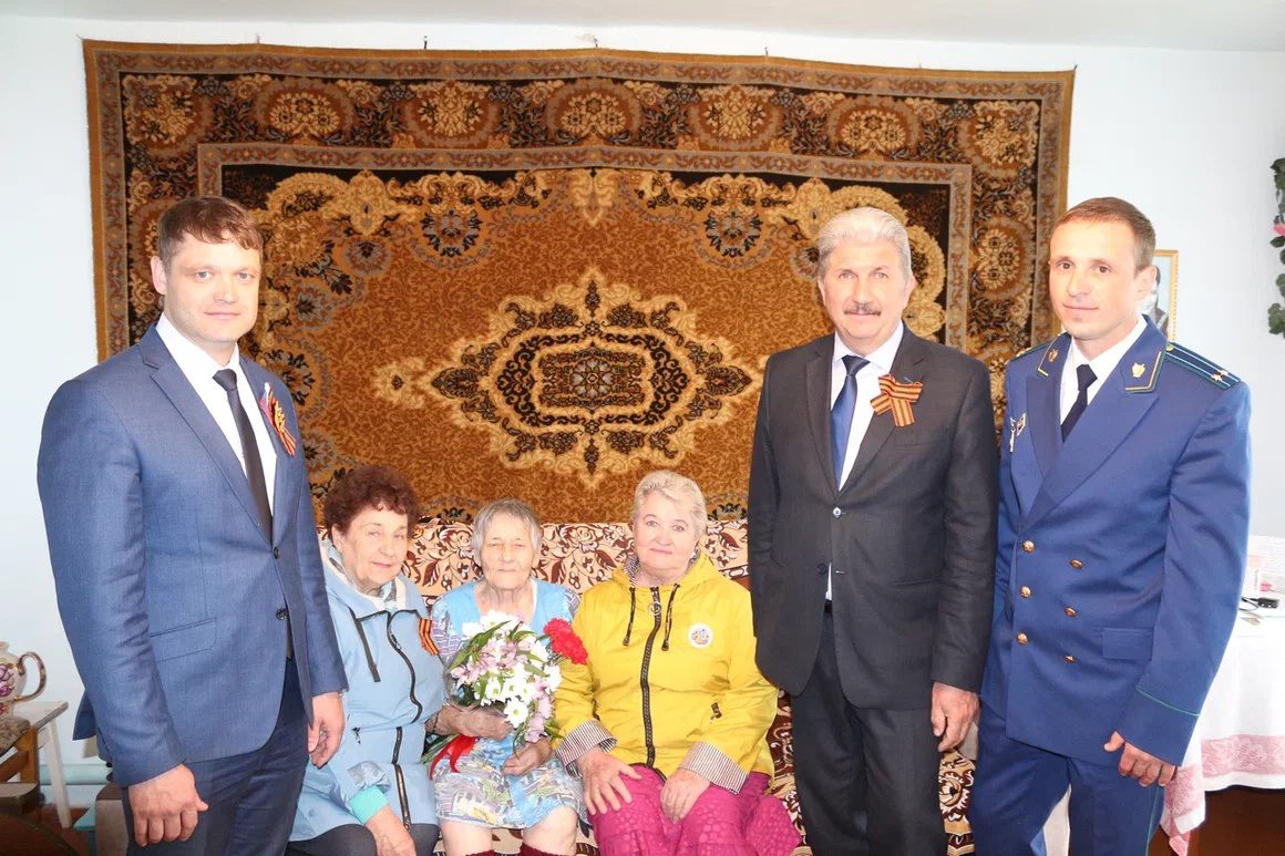Прокурор Еткульского района Сергей Сараев совместно с главами района и сельского поселения, председателем районного Совета поздравил тружениц тыла и ветерана с наступающим праздником Победы.