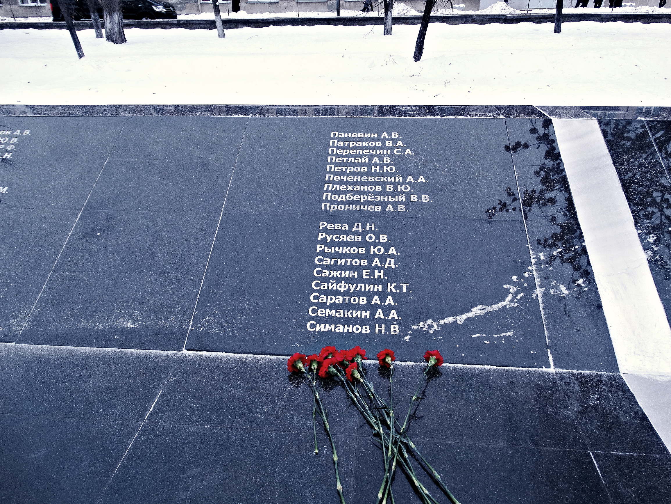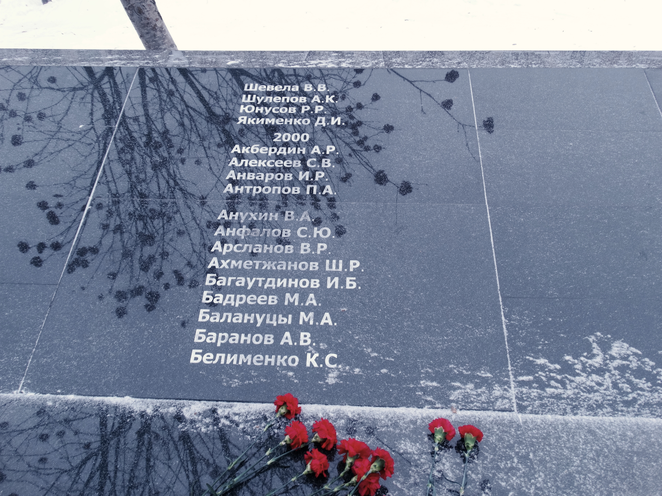 На памятных стелах выгравированы имена 622 южноуральцев, в том числе работников прокуратуры Николая Симанова и Игоря Анварова. Николай Симанов проходил службу в должности следователя прокуратуры Центрального района г.Челябинска, погиб 02.07.2000, находясь в служебной командировке в г.Аргун Чеченской Республики. Игорь Анваров проходил службу в органах прокуратуры Челябинской области, в прокуратуре Ханты-Мансийского автономного округа, погиб 12.10.2000, находясь в служебной командировке в г. Грозный Чеченской Республики.