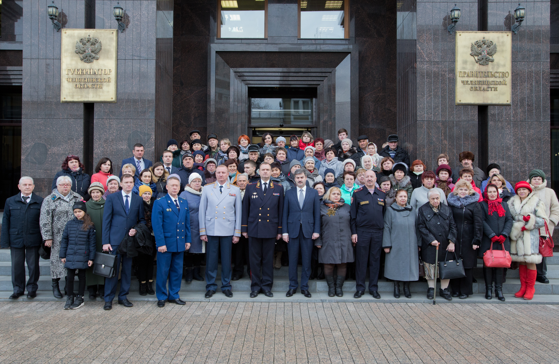 03 ноября 2017 года заместитель прокурора Челябинской области Евгений Саломатов, старший помощник прокурора области по пенсионному обеспечению Светлана Гасс совместно с родителями работников прокуратуры Николая Симанова и Игоря Анварова, погибших при исполнении служебных обязанностей в Чеченской Республике, приняли участие в Губернаторском приеме членов семей сотрудников правоохранительных органов, погибших на службе.