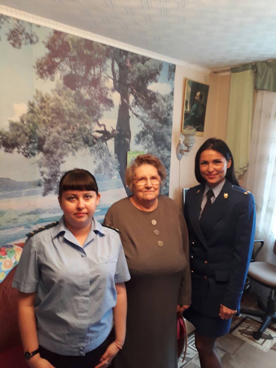 Работники прокуратуры с поздравительными открытками и подарками съездили в гости к заслуженным пенсионерам – Надежиной Доре Капелевне и Волчковой Галине Николаевне.