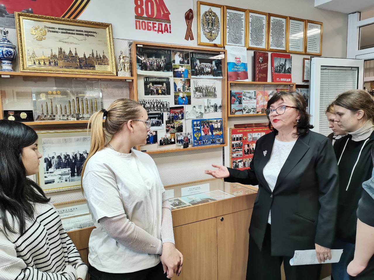 Экскурсионные лекции по музею прокуратуры, а также на площадке архитектурно-скульптурной композиции, посвященной работникам прокуратуры Челябинской области – участникам Великой Отечественной войны, провели прокурор Ленинского района г.Челябинска Ольга Анатольевна Чубук и ветеран прокуратуры Татьяна Юрьевна Звонарева. Они ознакомили студентов с историей прокуратуры Челябинской области,рассказали о прокурорах-фронтовиках,которые в послевоенное время заложили замечательные традиции честности. неподкупности, беззаветного служения закону. Достойными продолжателями традиций стали следующие поколения прокурорских работников.
