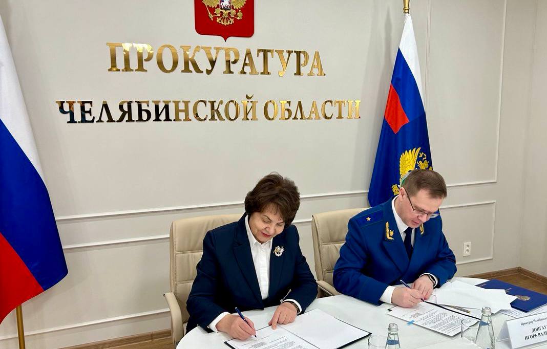 Прокурор Челябинской области Игорь Донгаузер и руководитель филиала Государственного фонда поддержки участников специальной военной операции «Защитники Отечества» по Челябинской области Галина Гаврилова подписали соглашение о взаимодействии