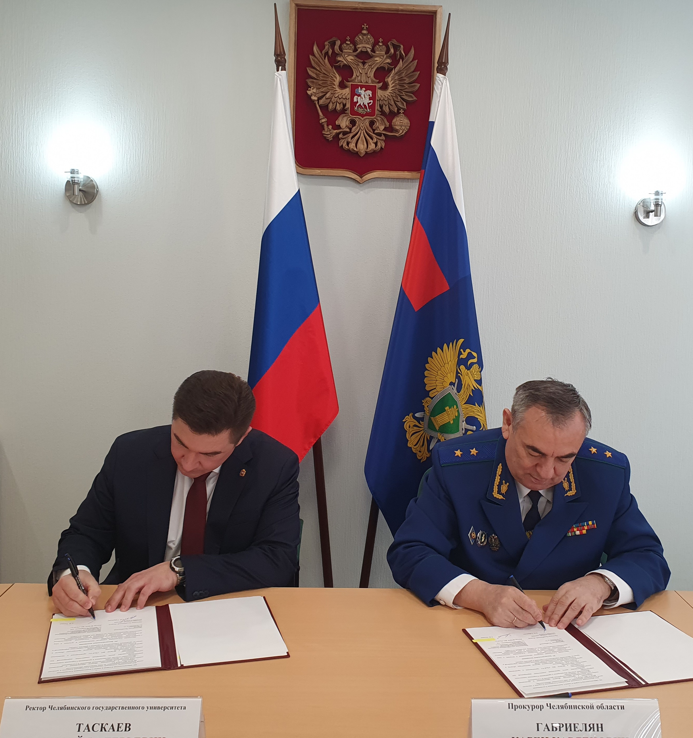 Прокурор области Карен Габриелян и ректор Челябинского государственного университета Сергей Таскаев подписали Соглашение о взаимодействии и сотрудничестве по вопросам правового воспитания и повышения уровня правовой культуры молодежи
