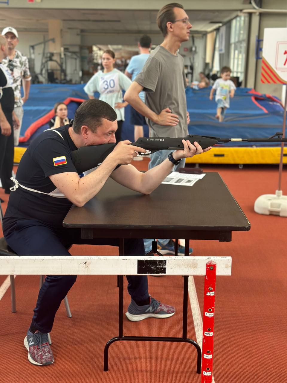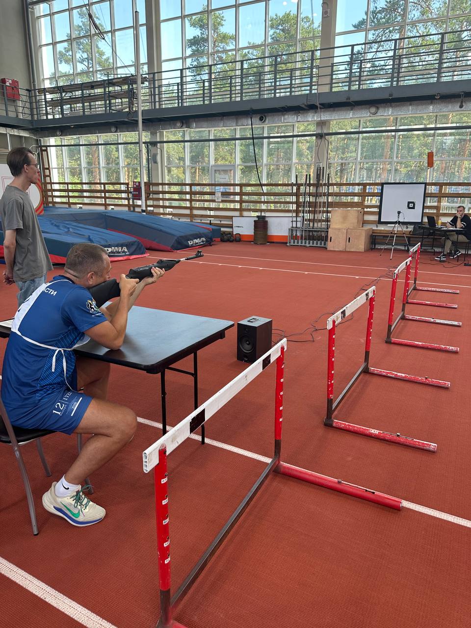 Участники соревнований прошли 5 этапов многоборья, которые включали в себя испытания по стрельбе, на скорость и силу (пресс), на силу (подтягивание и отжимание) и гибкость (наклон).