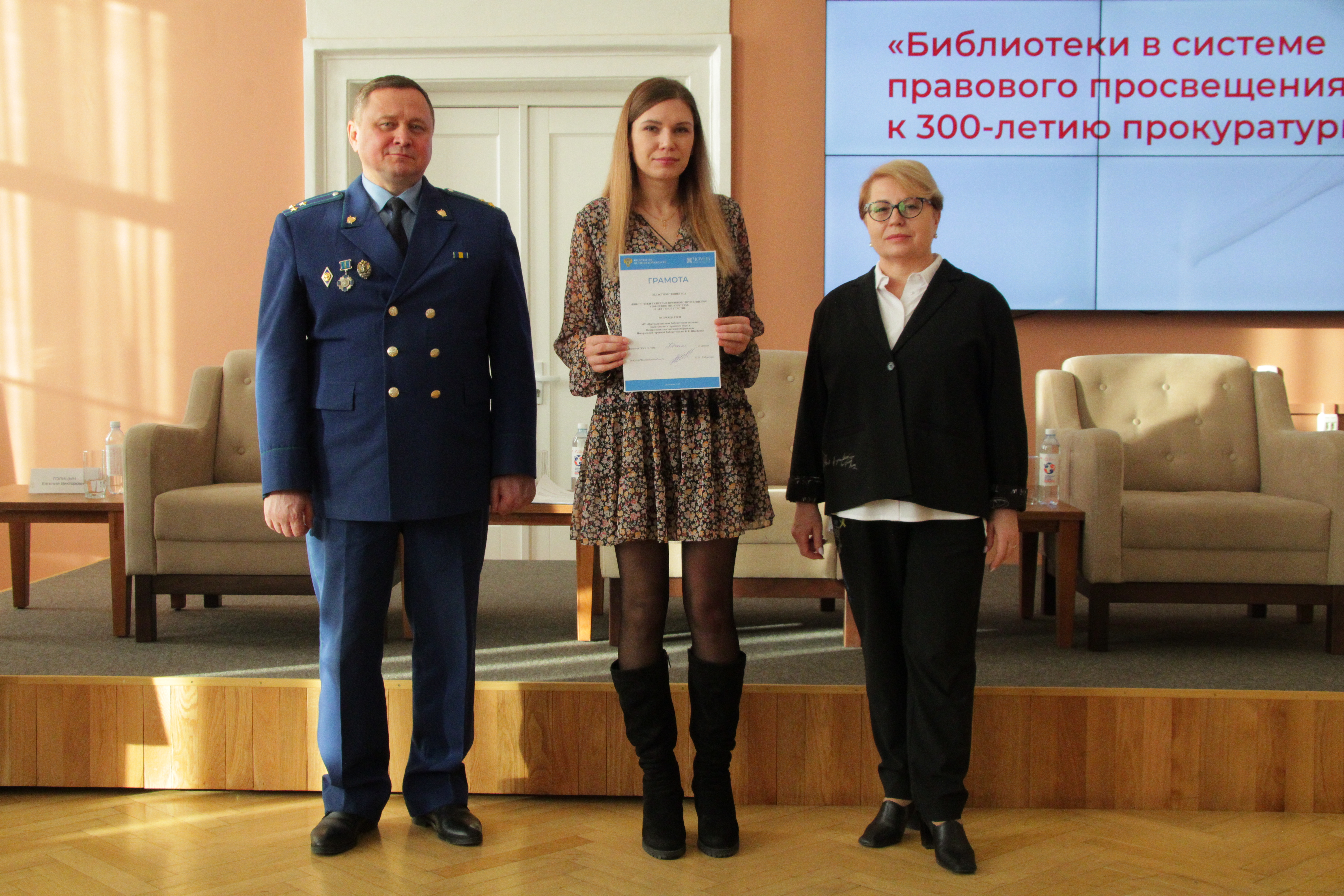 В завершение мероприятия были подведены итоги двух конкурсов: «Библиотеки в системе правового просвещения: к 300-летию прокуратуры» среди библиотек и территориальных прокуратур и молодежный конкурс «Петр Великий: закон и порядок».