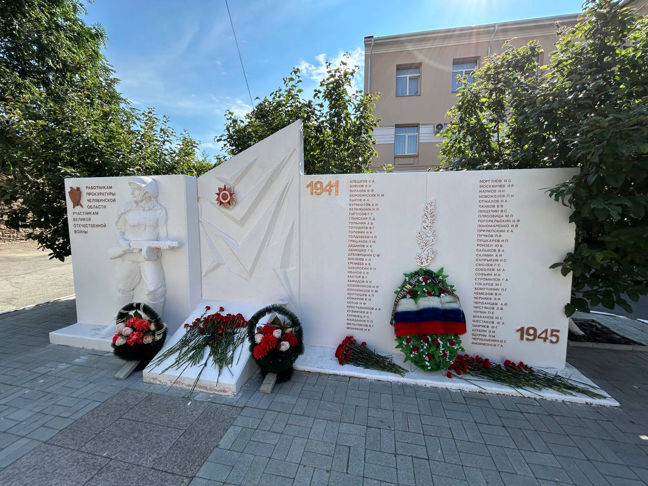 В период Великой Отечественной войны 69 работников прокуратуры Челябинской области ушли на фронт. Память о них увековечена в архитектурно-скульптурной композиции, посвященной работникам прокуратуры Челябинской области - участникам Великой Отечественной войны.