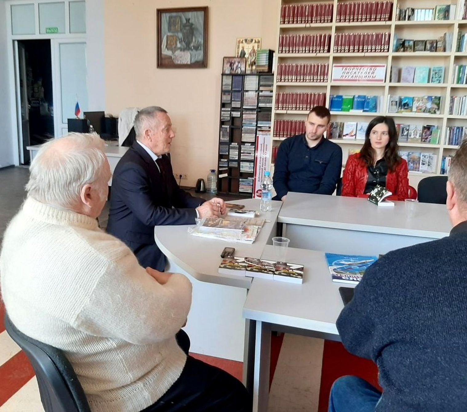 В Луганской республиканской универсальной научной библиотеке им. М. Горького председатель совета ветеранской организации прокуратуры Забайкалья Валерий Попов провел презентацию сборника стихотворений «Мы с вами, братья!», посвященных специальной военной операции.