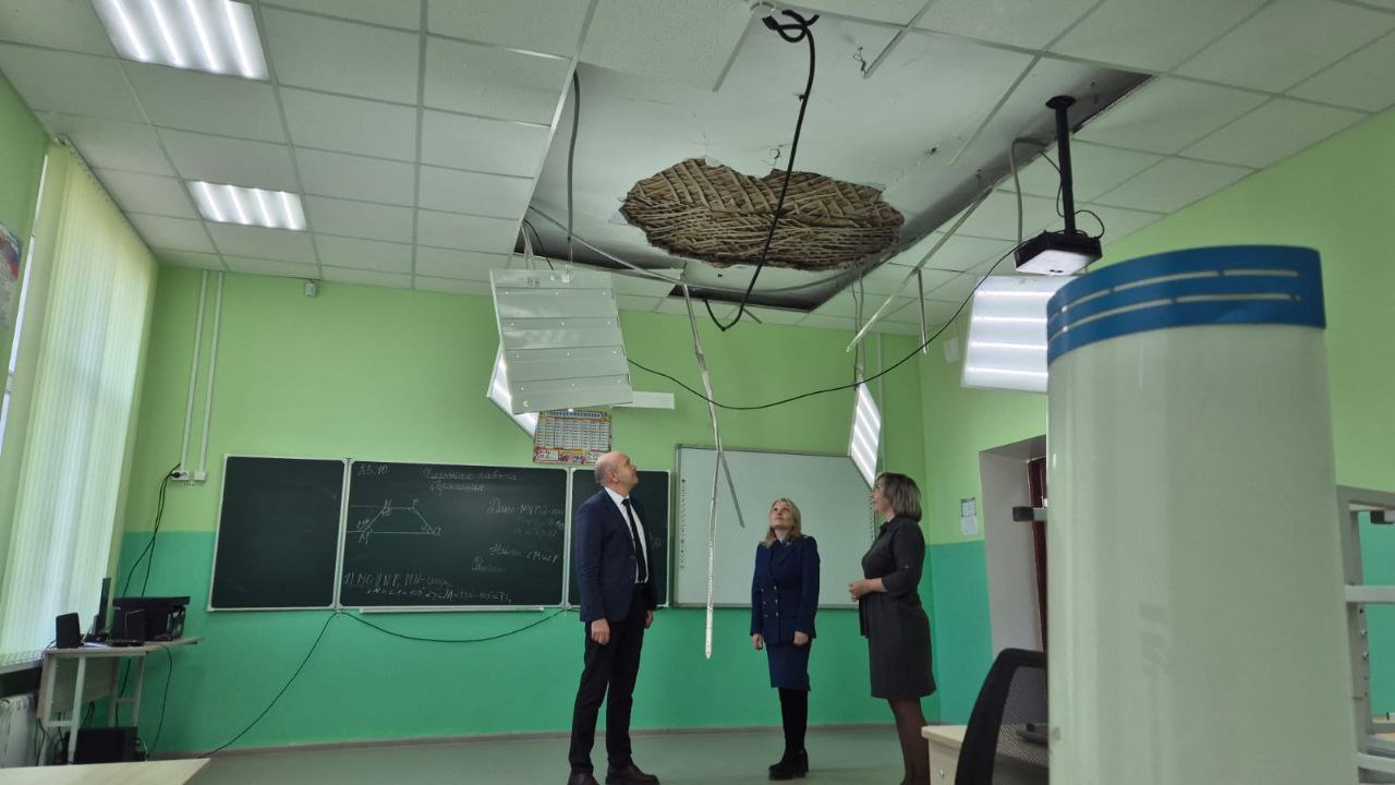 После вмешательства надзорного ведомства подрядчику направлена претензия, классы с деформированными подвесными потолками закрыты до проведения ремонта.