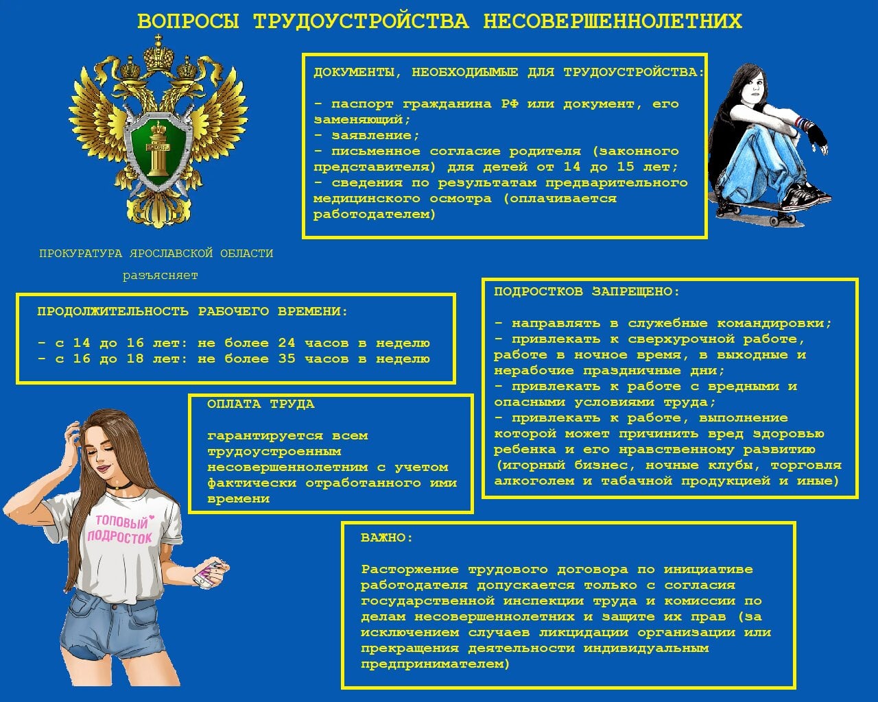 Отделом по надзору за соблюдением прав,свобод и законных интересов несовершеннолетних прокуратуры области подготовлена памятка по вопросам трудоустройства несовершеннолетних
