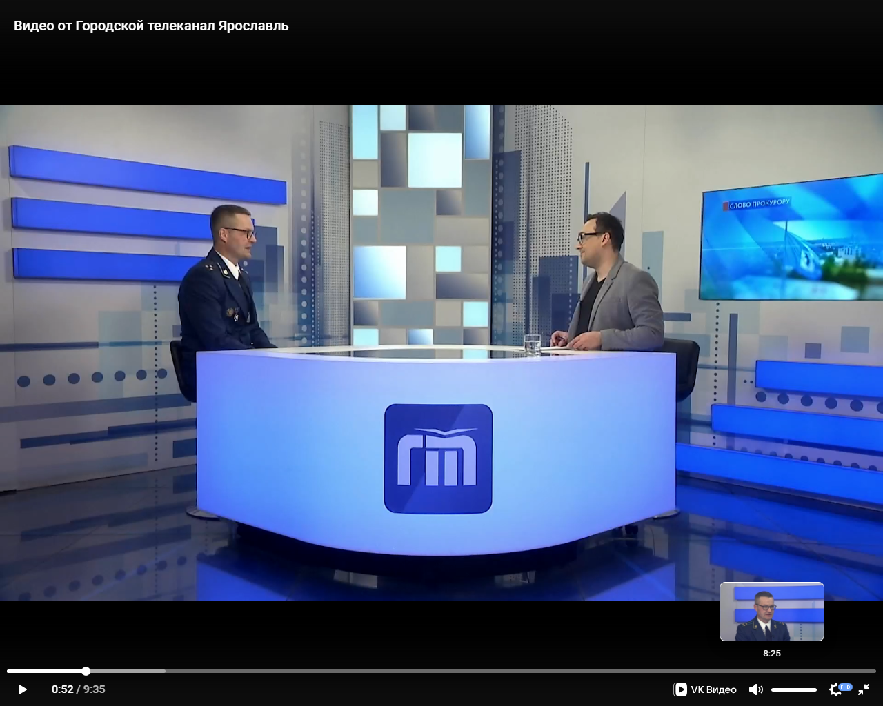 Прокурор Фрунзенского района г. Ярославля Добрынин О.В. выступил в программе "Слово прокурору" на Городском телеканале на тему защиты несовершеннолетних от негативной и запрещённой информации.