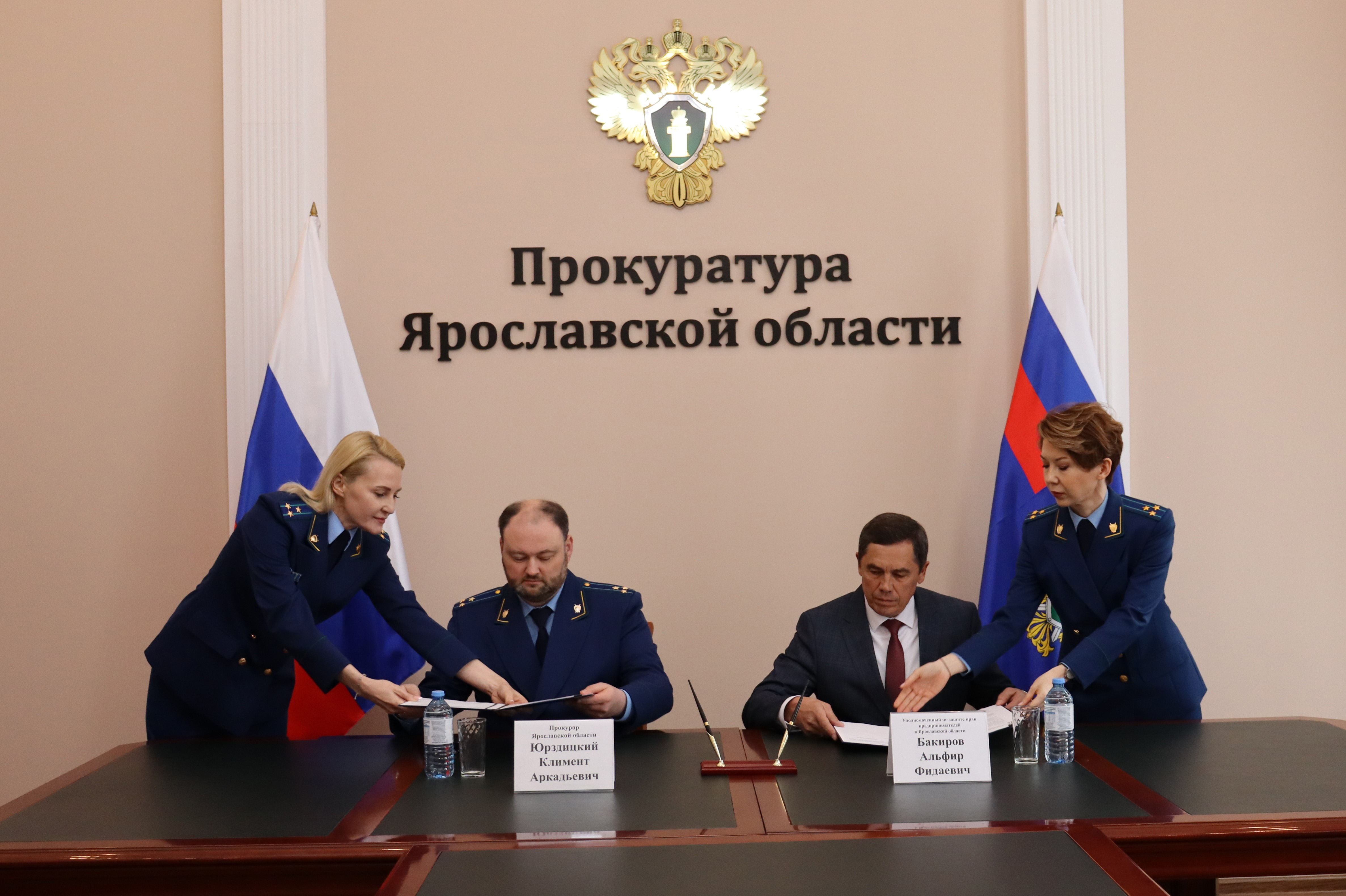 Прокурор Ярославской области Климент Юрздицкий подписал соглашения об информационном взаимодействии с руководителем регионального управления Федеральной налоговой службы Александром Поляковым и бизнес-омбудсменом Альфиром Бакировым.
