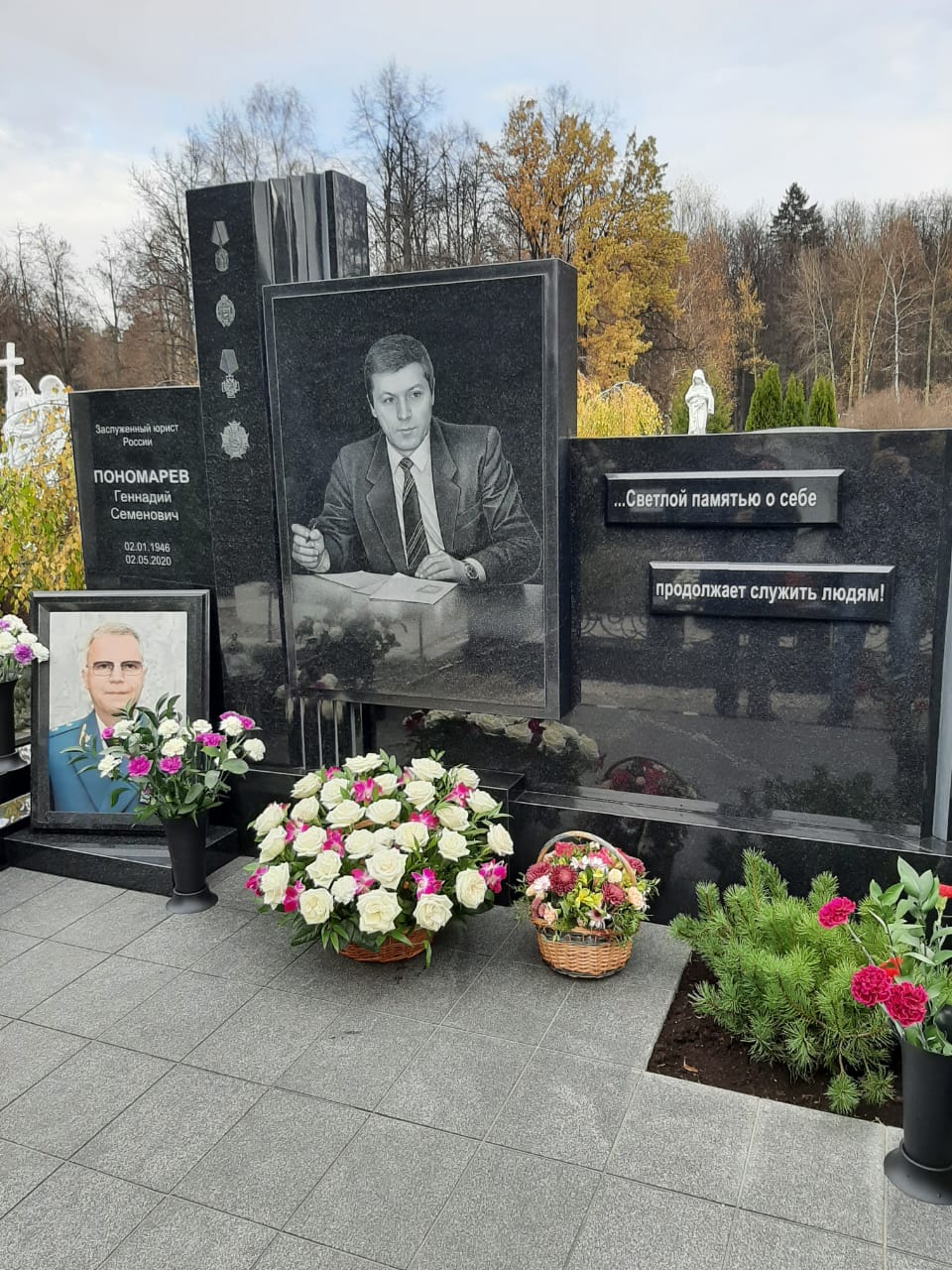Сегодня, 23 октября 2021 года на Троекуровском кладбище г. Москвы состоялось открытие памятника государственному деятелю, заслуженному юристу Российской Федерации бывшему прокурору городаМосквы государственному советнику юстиции 2 класса Пономареву Геннадию Семеновичу. В церемонии приняли участие Никулинский межрайонный прокурор Константин Простаков, прокурор Москвы в 1995-2000 годах Сергей Герасимов, ветераны прокуратуры, а также вдова Геннадия Семеновича – Татьяна Крамар.