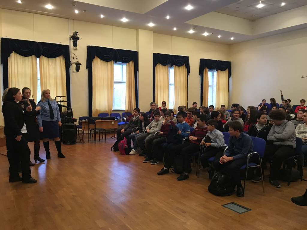 Так, работники прокуратуры совместно с инспекторами группы подразделений по делам несовершеннолетних 6 и 7 отделов полиции Управления внутренних дел на Московском метрополитене ГУ МВД России по г. Москве провели мероприятие в Государственном бюджетном общеобразовательном учреждении «Школа № 1231».