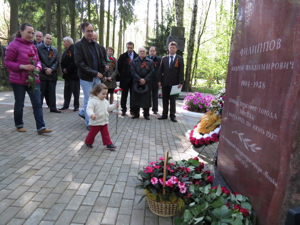 На этот раз в мероприятии принял участие потомок Филиппова по линии матери Алексей Парменов, который, как и отец Андрея Владимировича, избрал профессию архитектора. О том, что его родственник – первый прокурор Москвы - покоится в Коммунарке и что силами работников столичной прокуратуры ему поставлен памятник, Алексей узнал из сайта прокуратуры. Почтить память расстрелянного прокурора он привел свою семью.