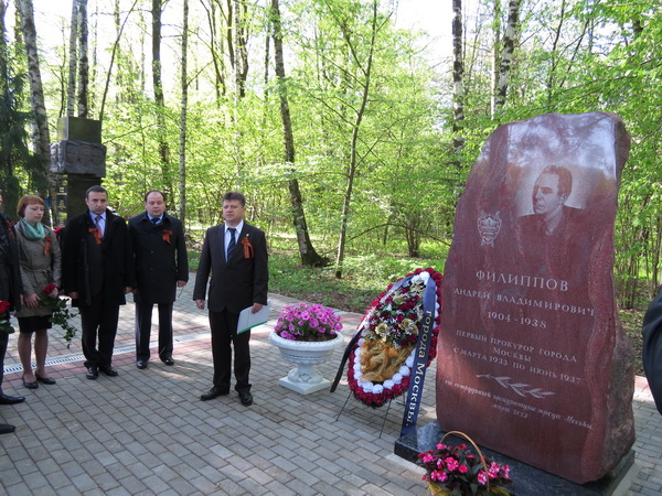 8 мая 2014 года на территории памятника истории «Спецобъект Коммунарка» - месте массовых захоронений жертв политических репрессий 30-х – 40-х годов – состоялась церемония возложения венков к памятному знаку первому прокурору города Москвы Андрею Филиппову.