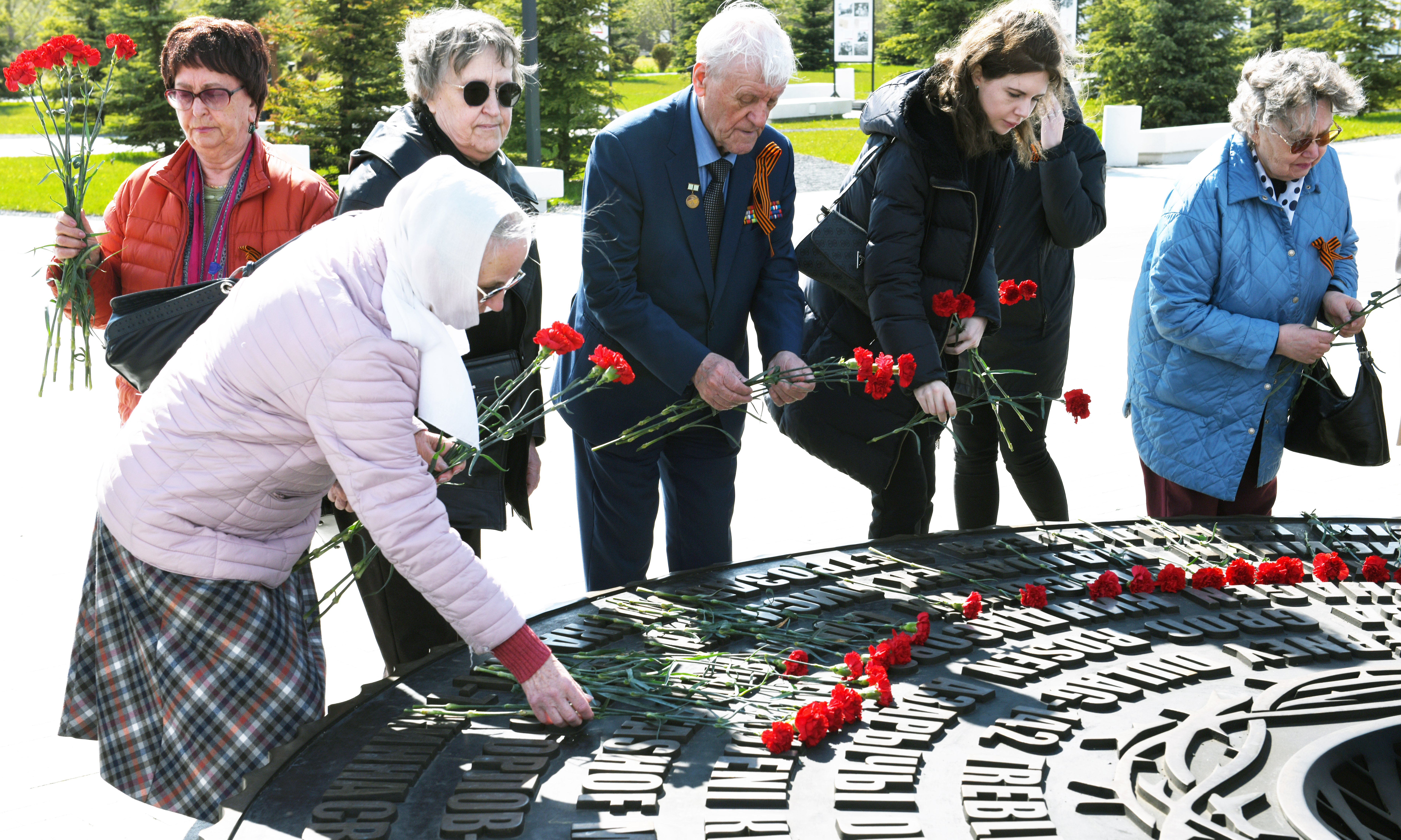 В честь 80-летия Великой Победы ветераны и молодые специалисты органов прокуратуры города возложили цветы к вечному огню у подножия Гатчинского мемориала