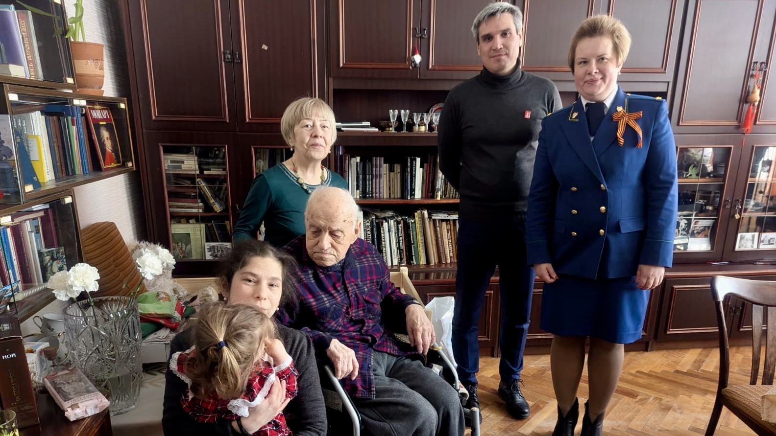 Помощник прокурора Адмиралтейского района г. Санкт-Петербурга Мария Светлакова поздравила Владимира Дмитриевича с праздником, поблагодарила за стойкость, мужество и жизненный путь, пожелала крепкого здоровья и благополучия.